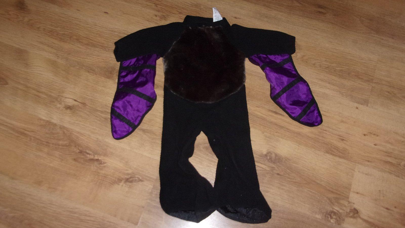 Overal netopýr, vel. 80/86, oblečený párkrát, bez vady, na karneval skvěle poslouží, za krkem na suchý zip, v rozkroku na druky pro snadnější přebalování.