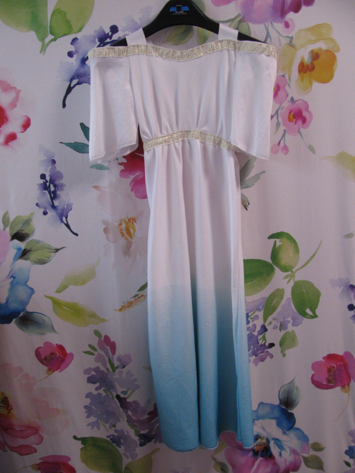 Krásné, dlouhé, elastické šaty řecké bohyně, krásně vystínovaná barva, v pase do gumy, zdobná zlatá stuha, 100% polyester. Top stav bez vady.