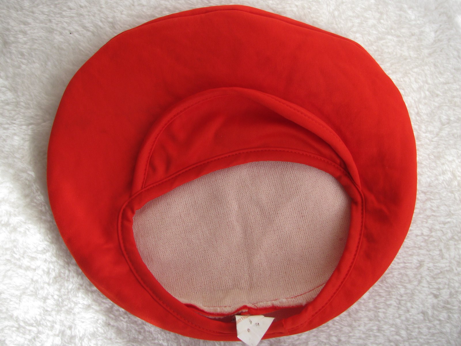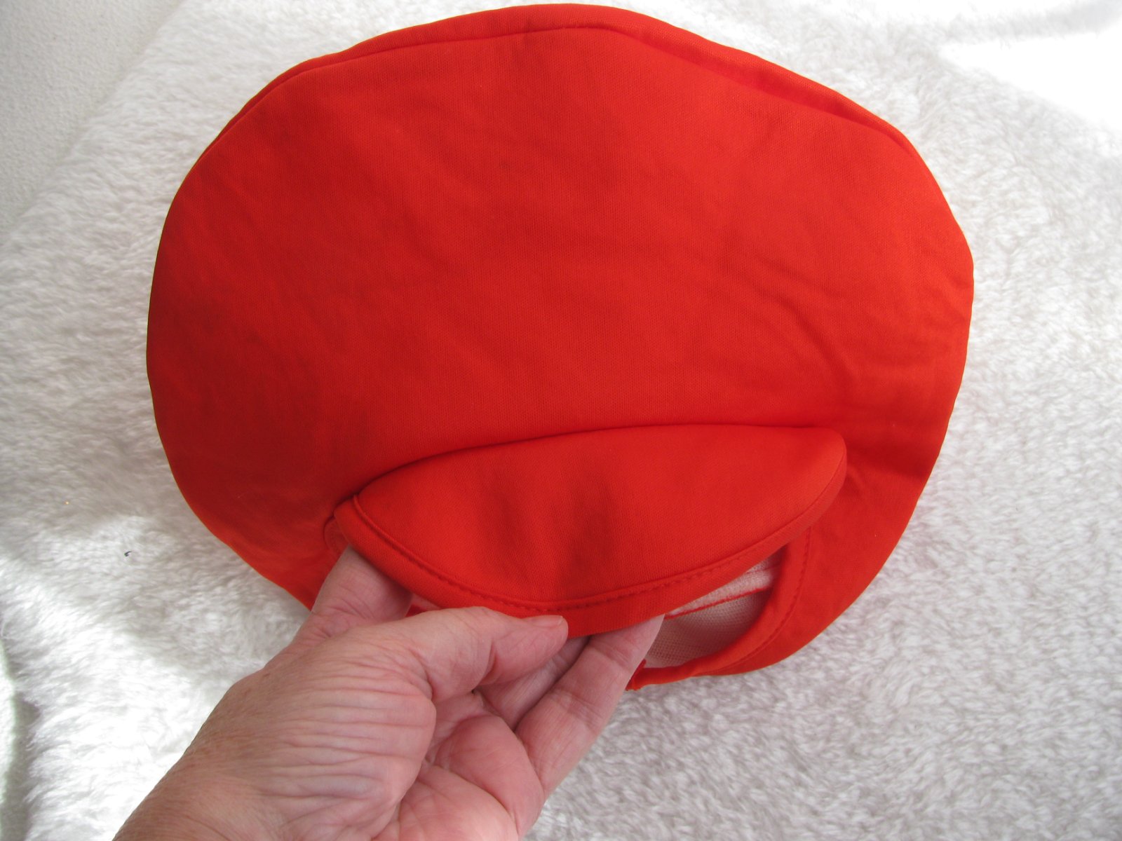 Červená čepice s kšiltem, jen nemá znak nad kšiltem. 100% polyester. Bez vady.