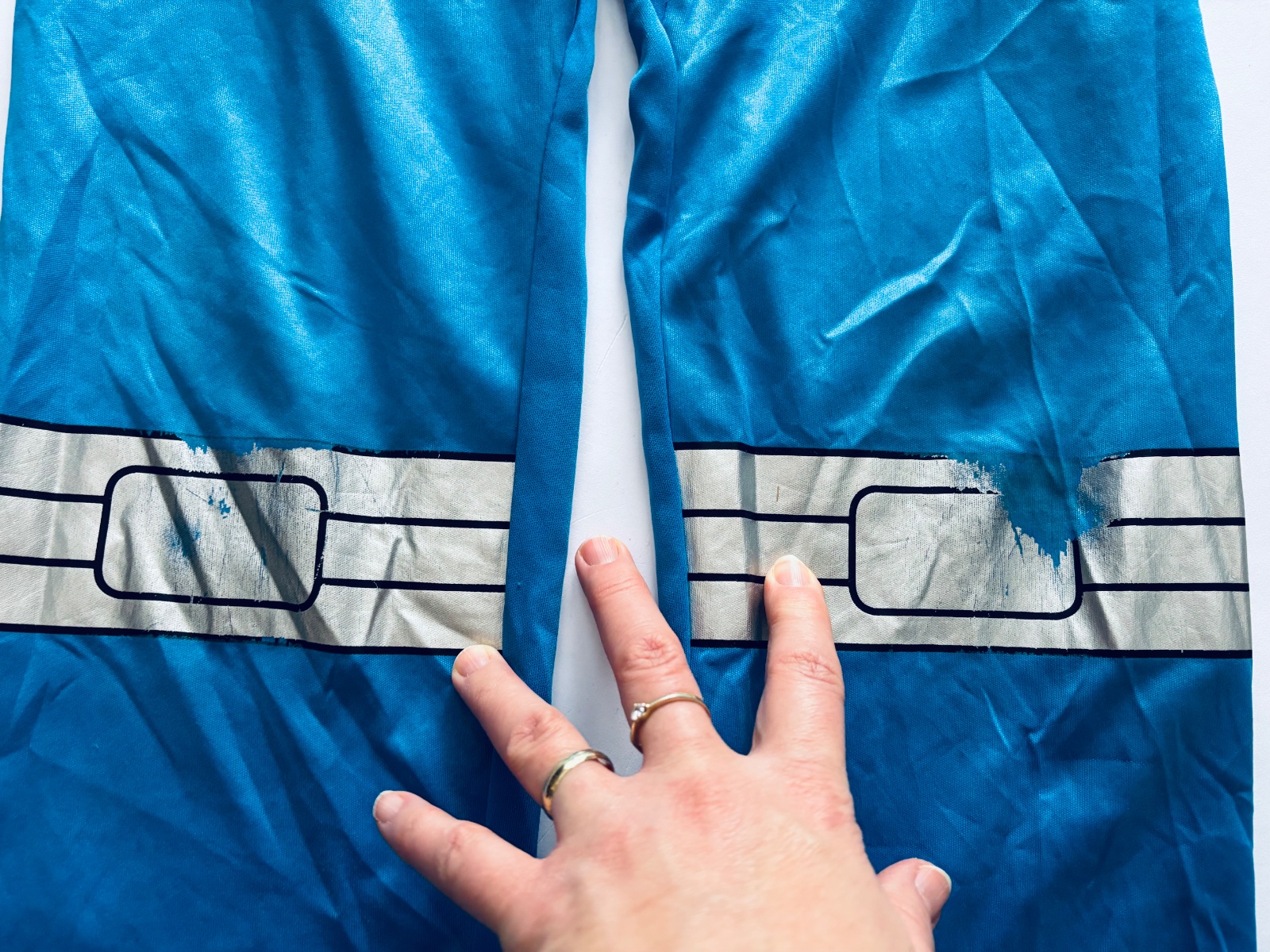 DOBRÝ STAV: mírně nošené , na kolenou potisk ošoupaný , zohledněno v ceně.