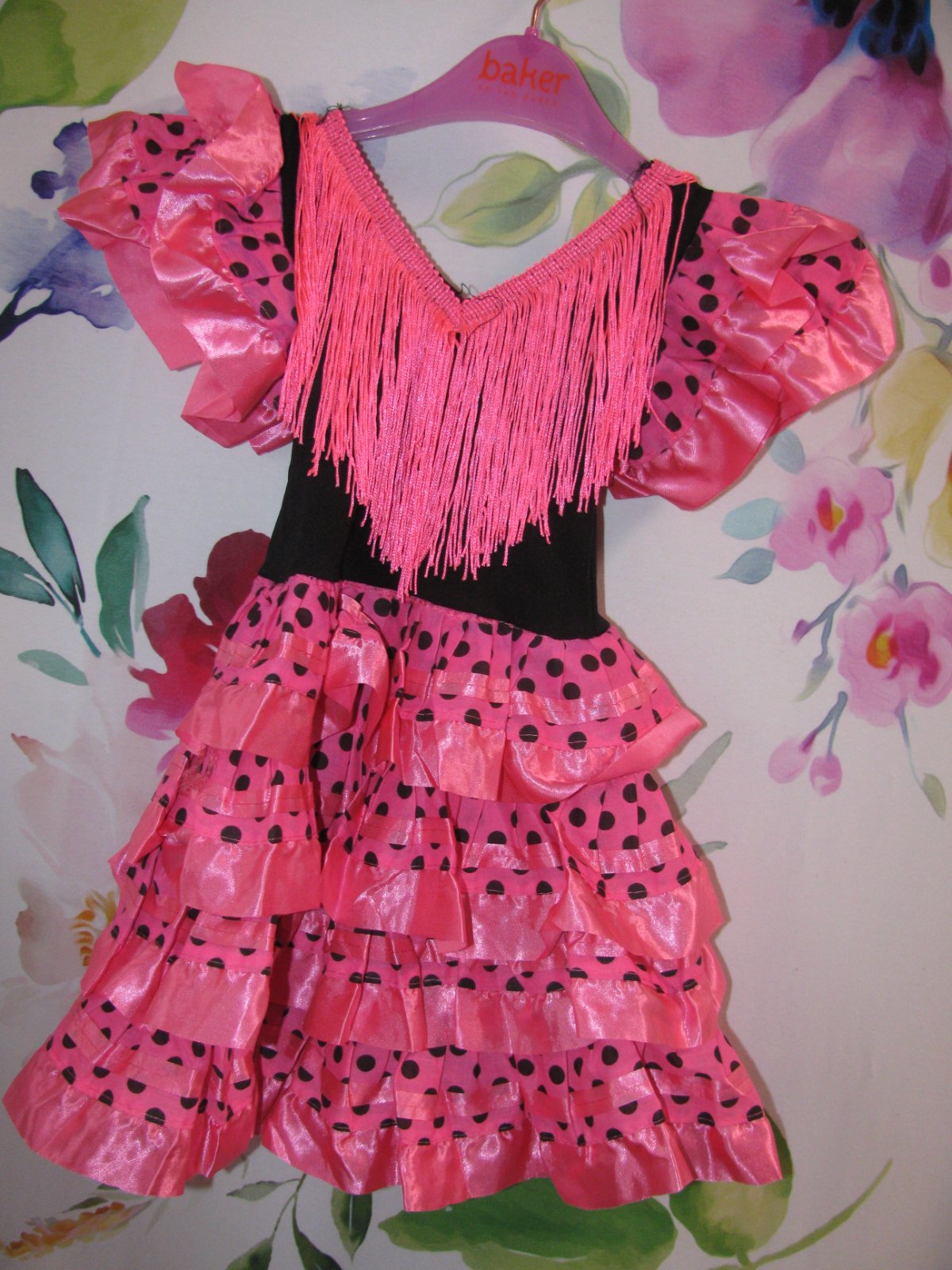 Krásné růžovo černé ,volánkové šaty, v pase pružné, elastické bolerko, 100%polyester, 100% polyamid.