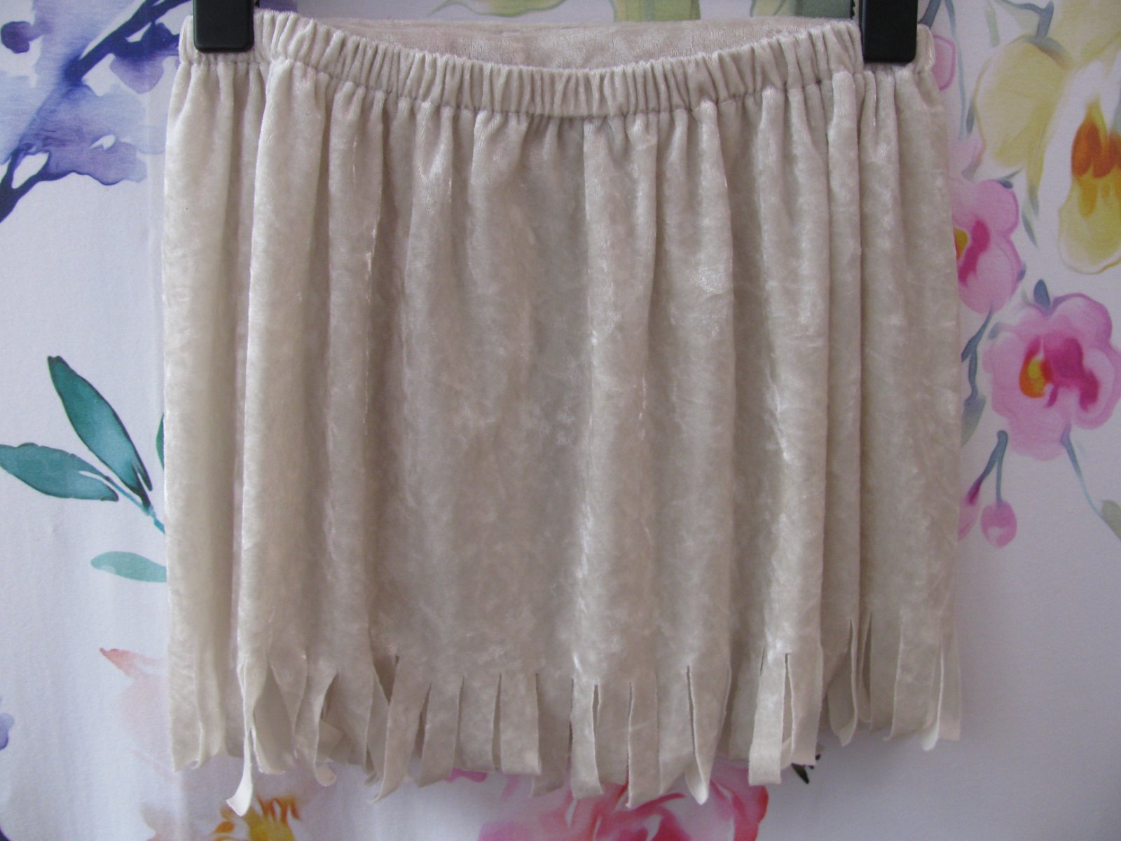 Hezká, elastická, velurová sukně s peříčky, v pase do guma a s regulací na suchý zip. 100% polyester. Žluté peříčko je kousek ulomené, jinak bez vady. Velikost odhadem, proto prosím pečlivě měřte, děkuji.