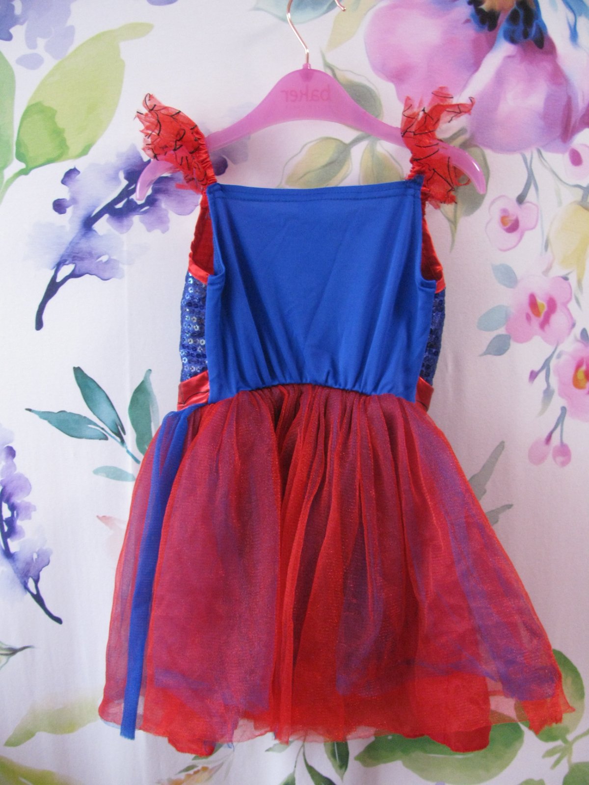 Hezké elastické šaty, bolerko zdobené flitry se znakem, v pase pružné do gumy, 100% polyester. Krásný stav bez vady.