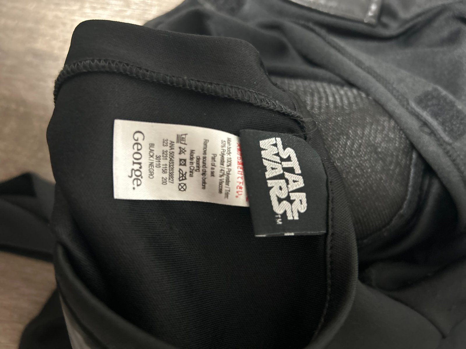 Prodám dětský kostým STAR WARS, zn. GEORGE, velikost 122-128. Elastický overal, za krkem na suchý zip, v pase pružný. Materiál 53% polyester, 47% viskóza. Rozměry viz. foto. Drobné známky použití zohledněny v ceně, jinak v dobrém stavu. Cena 150Kč plus zásilkovna či balíkovna.