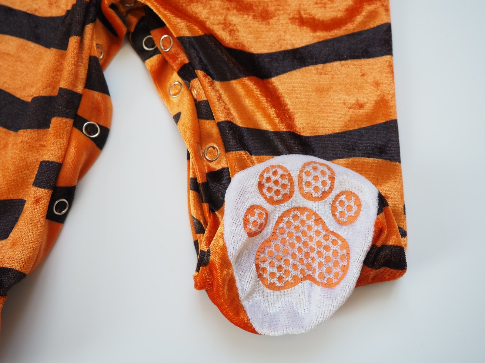 Semišový kostým Tygra s propínáním mezi nožičkama.