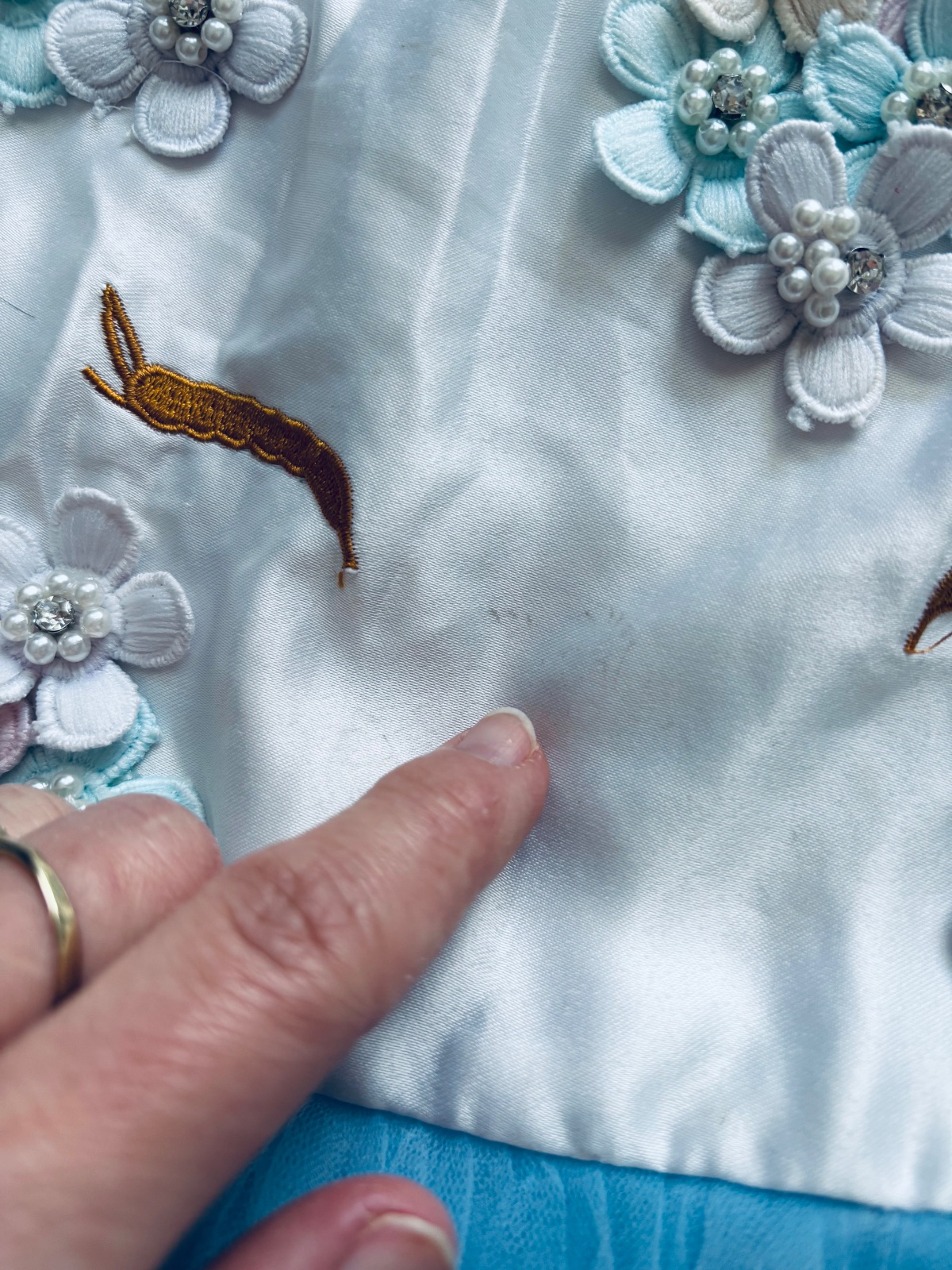 DOBRÝ STAV - žmolíky na lemech, spíš na donošení, na doma, výrznější žmolík....u takovéto stavu oblečeni je vždy zohlednění v ceně .