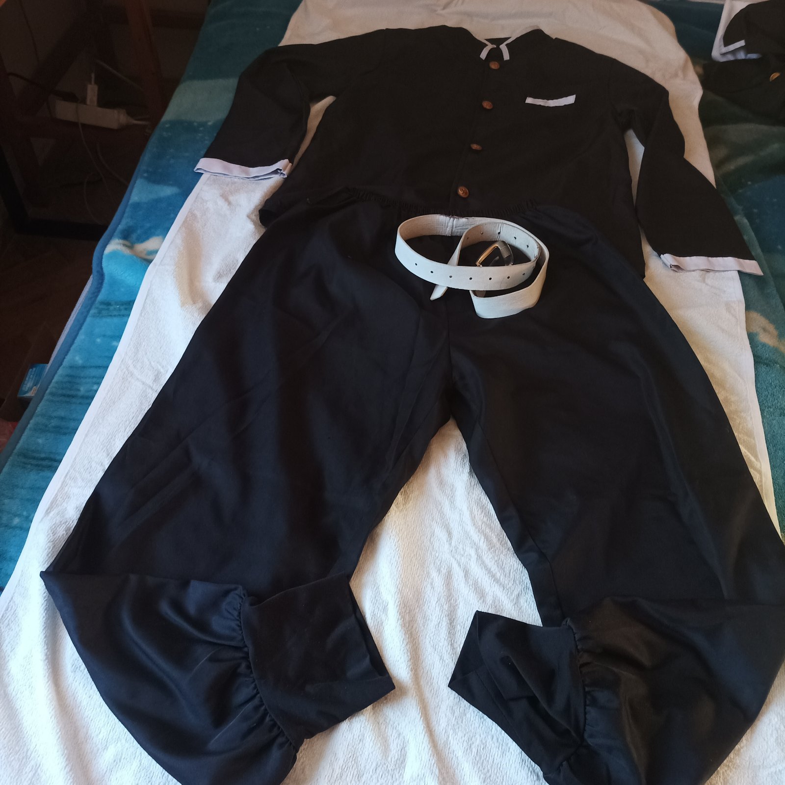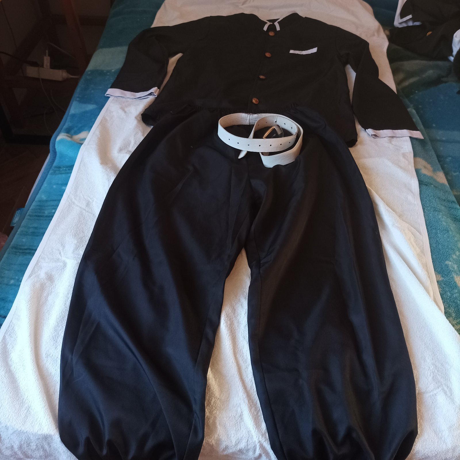 Prodám kostým inspirovaný manga anime demon slayer - uniforma shinobu - kalhoty, sako,pásek.kalhoty v pase guma,poutka na pásek, spodek kalhot manžeta.