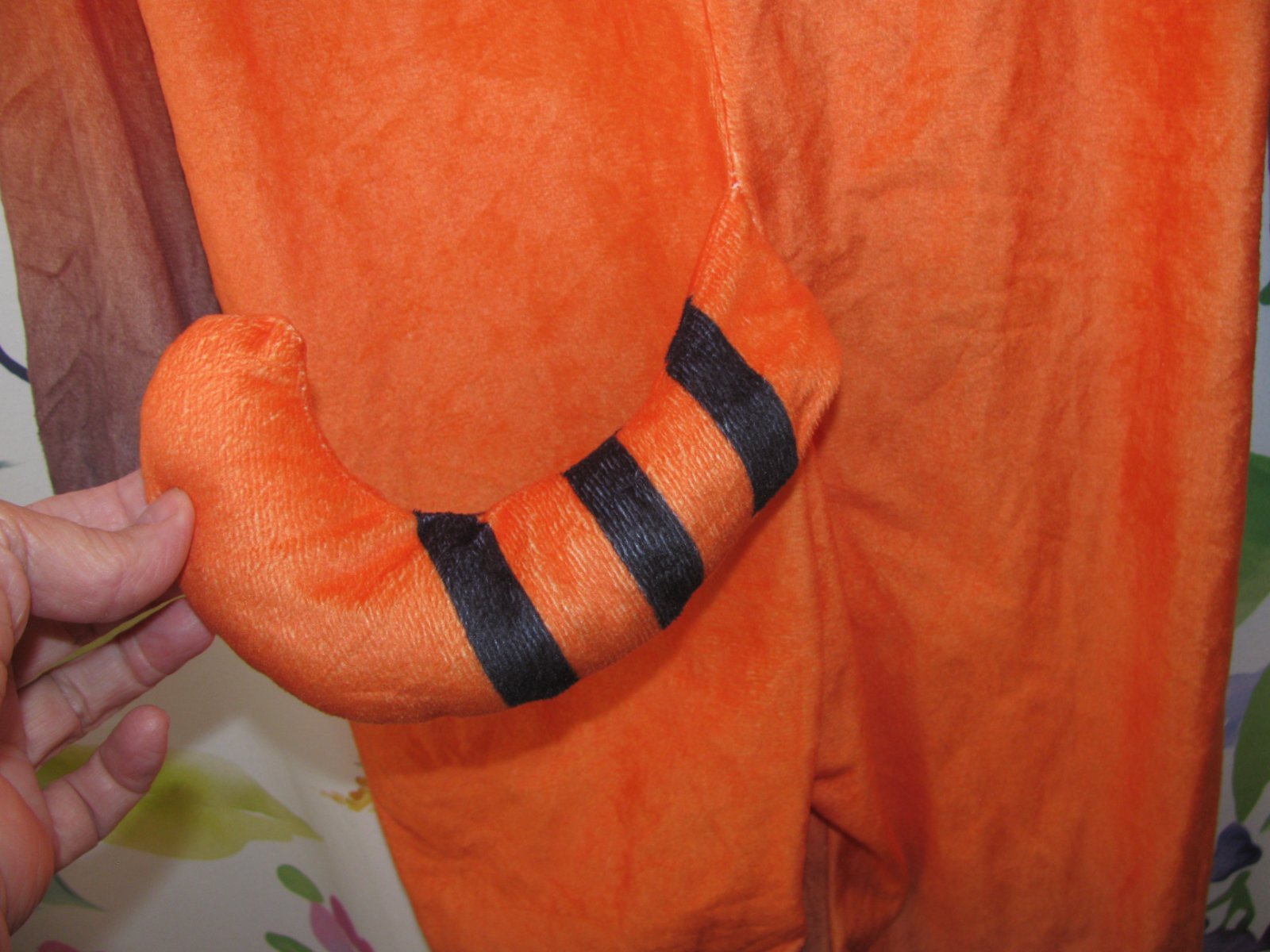 Krásný oranžový kostým, lemy pružné do gumy, dlouhý zip, kapuce s plastovýma očima, ocásek napevno, 100% polyester. Velikost uvedena dle rozměrů. Jedno oko velmi lehce zmáčknuté, né prasklé.Jinak bez dalších vad.