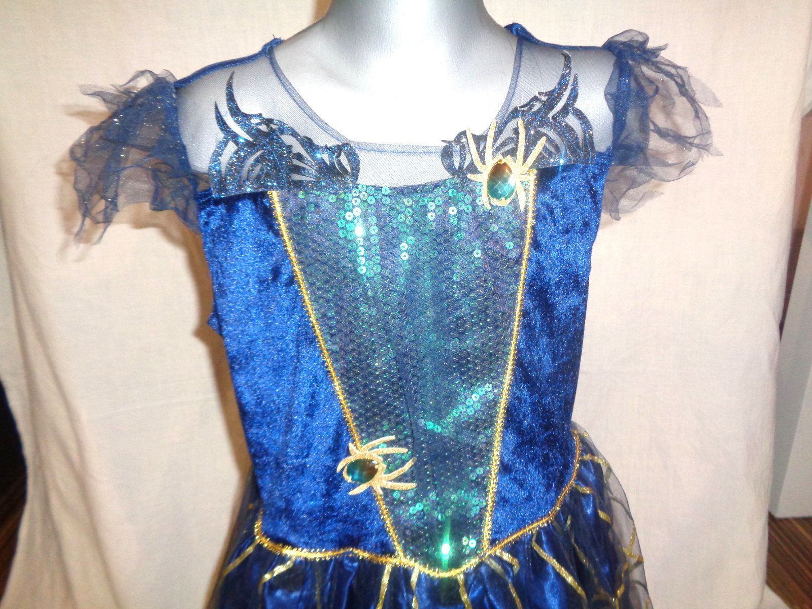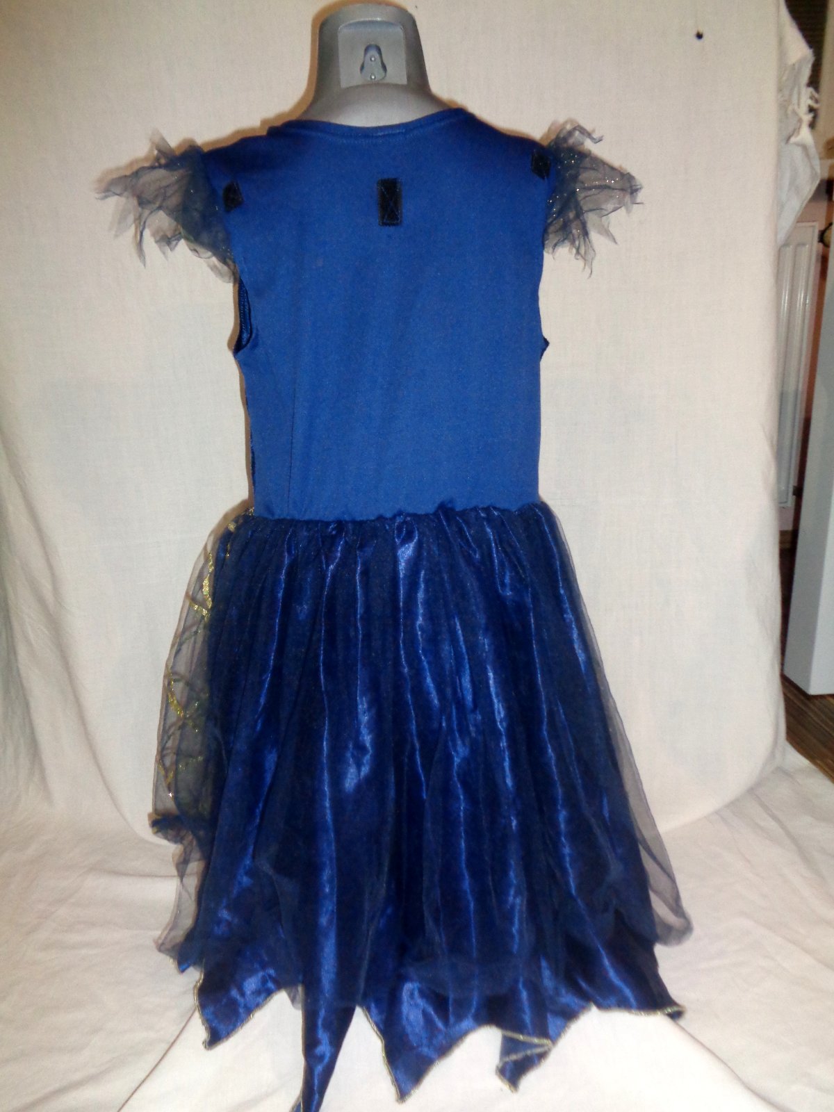 NOŠENÝ - BEZ VADY. KRÁSNĚ PROPRACOVANÉ MODRÉ ŠATY SE ZALTÝMI PRVKY. PŘIDÁVÁM OHNIVOU PARUKU. VRCHNÍ ČÁST PRUŽÍ. DOPORUČUJI - KRÁSNÉ.