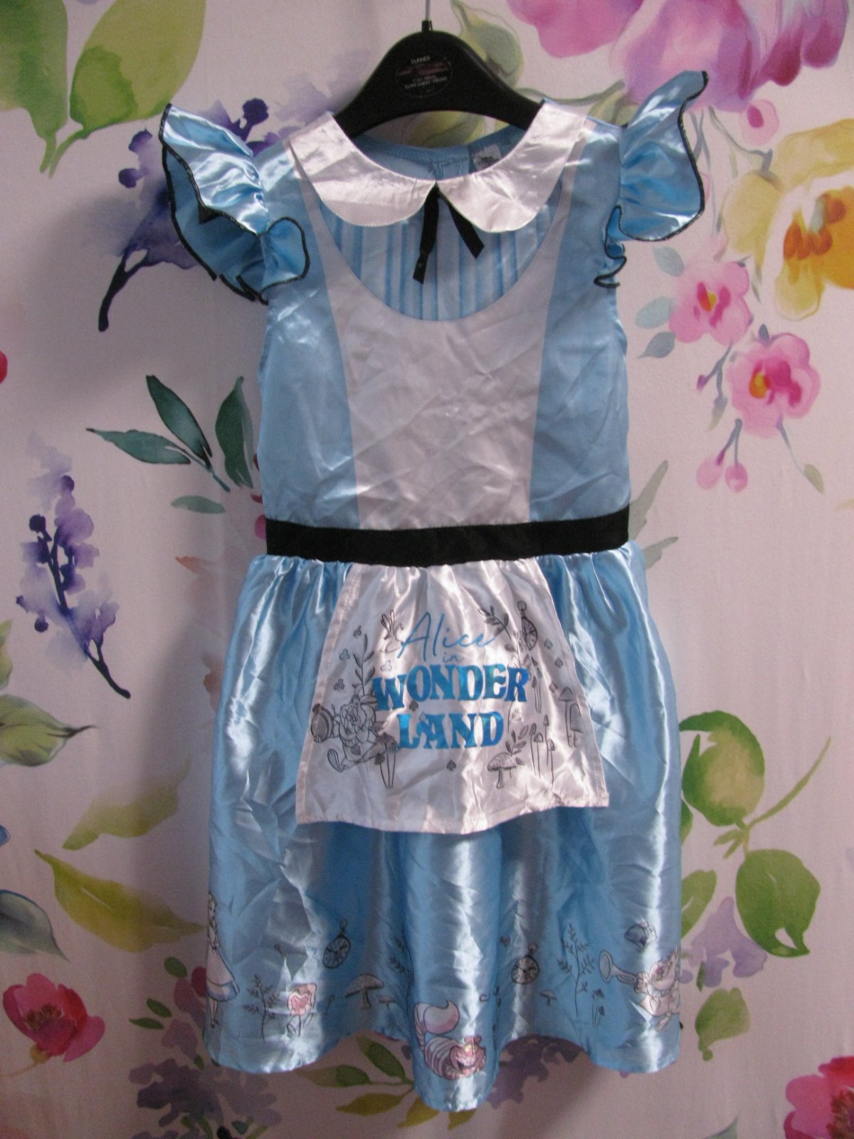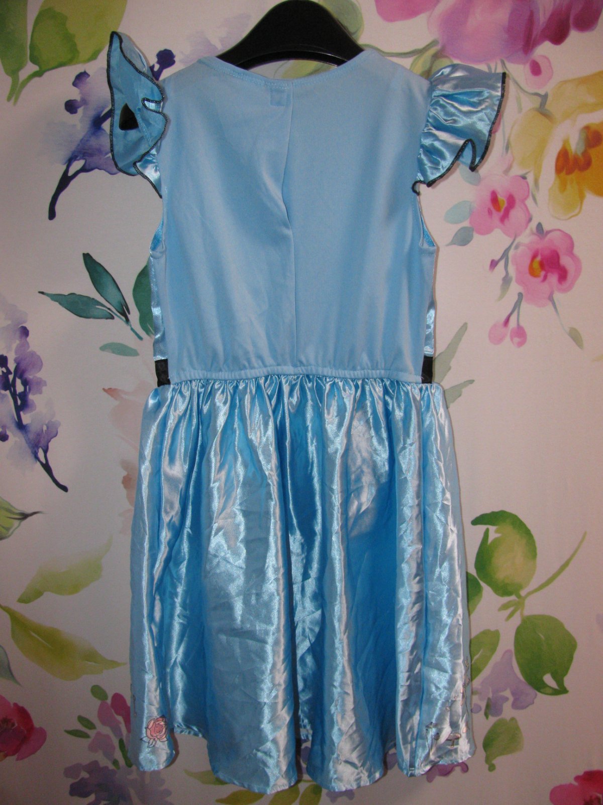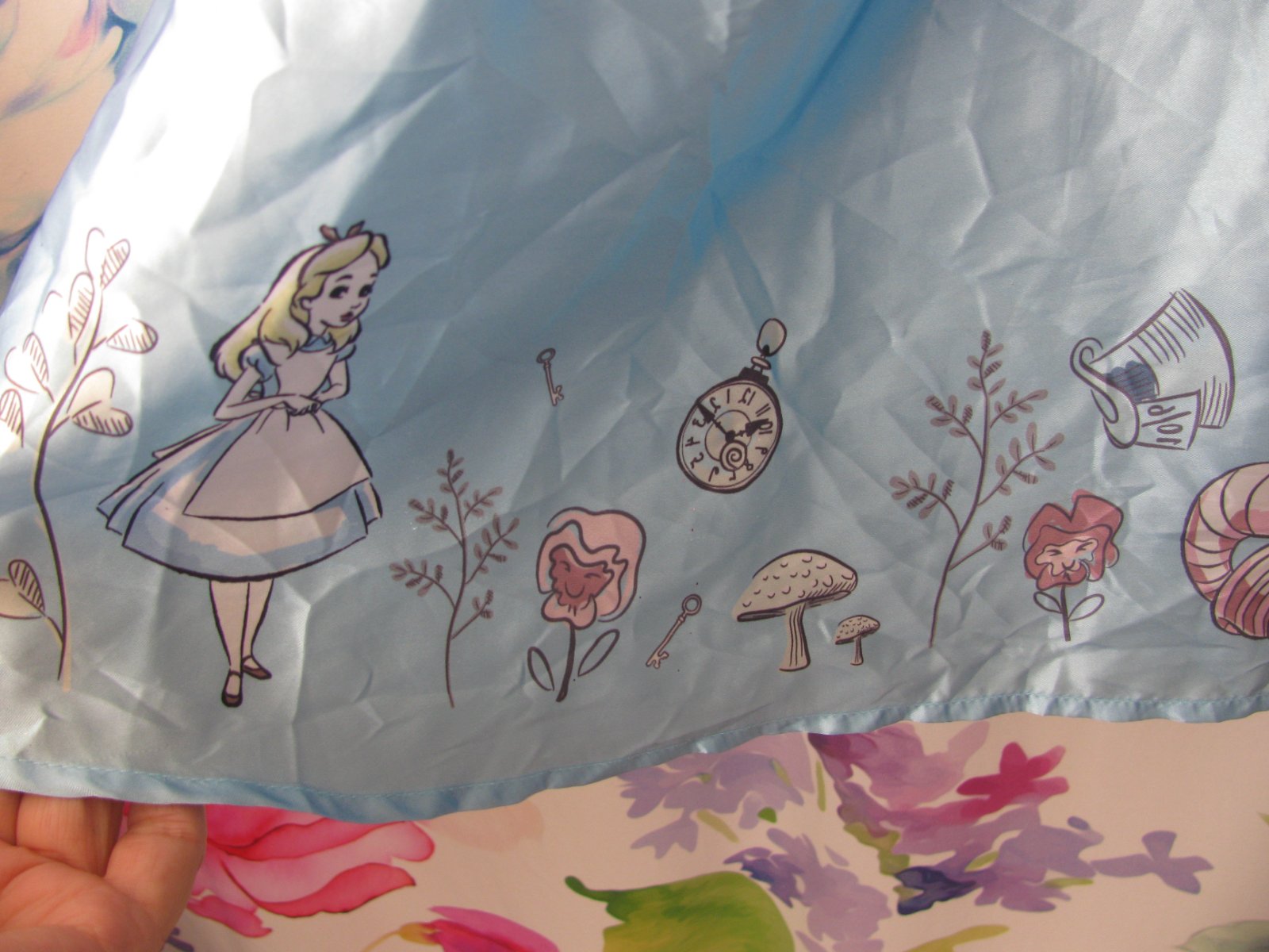 Krásné saténové šaty, se zástěrkou, krásnými obrázky, v pase pružné do gumy, zap. za krkem na suché zipy, 100% polyester.