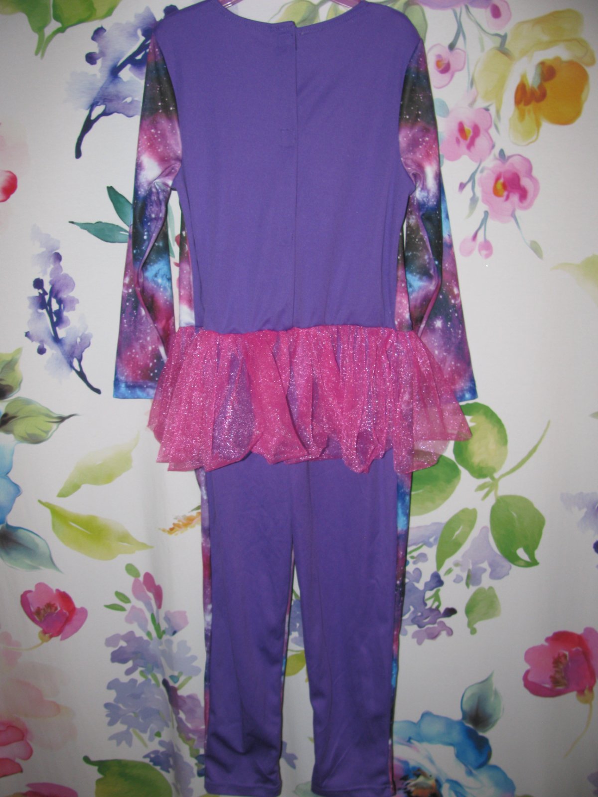 Krásný elastický overal s tylovou sukýnkou, za krkem zap. na suché zipy, v pase pružné do gumy, 100% polyester.