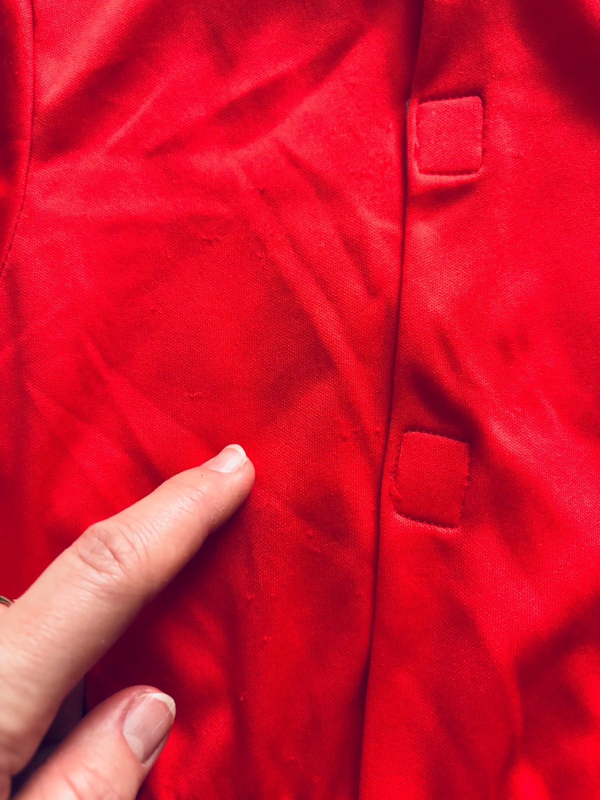 DOBRÝ STAV - žmolíky na lemech, spíš na donošení, na doma, výrznější žmolík....u takovéto stavu oblečeni je vždy zohlednění v ceně .