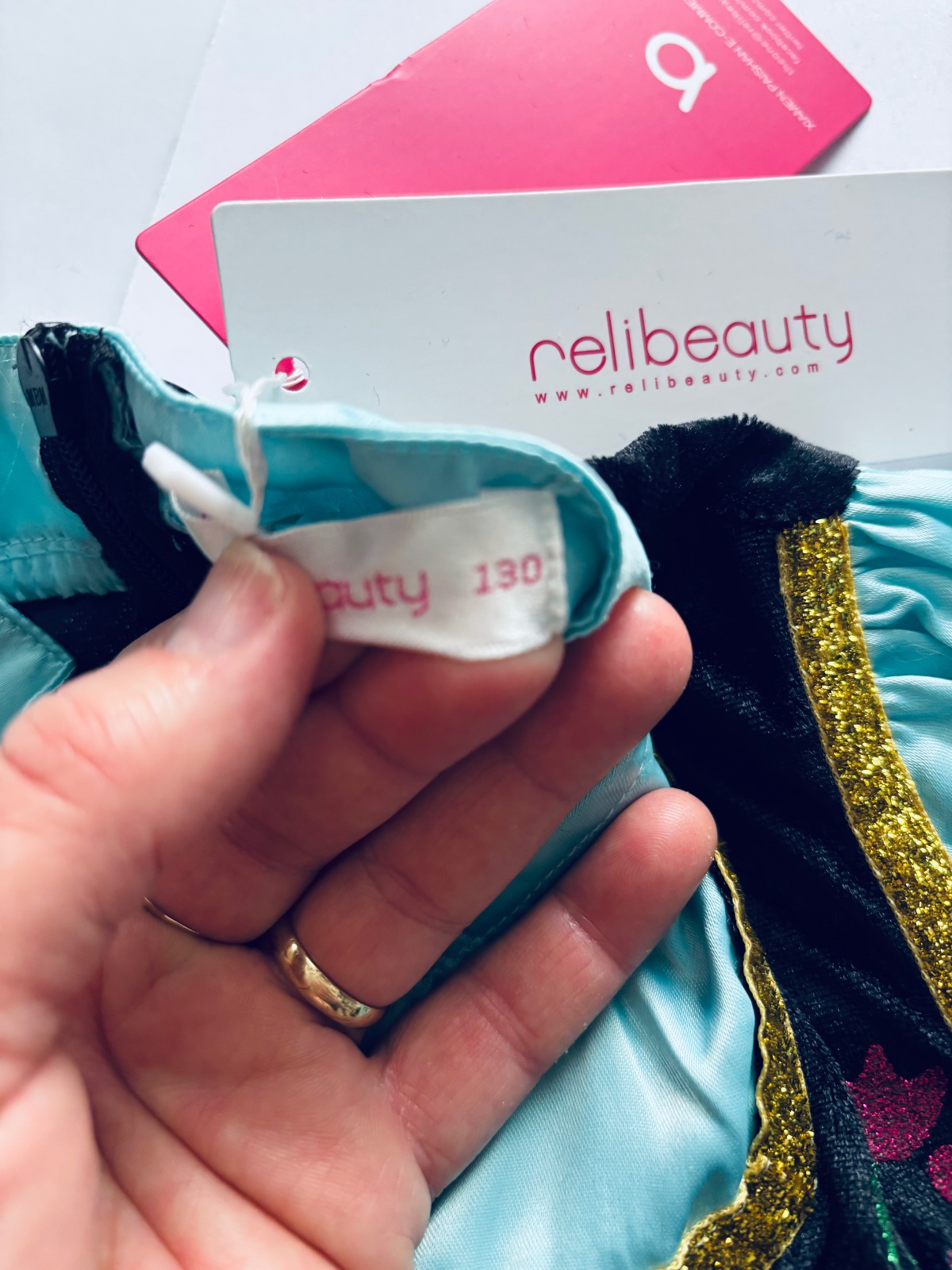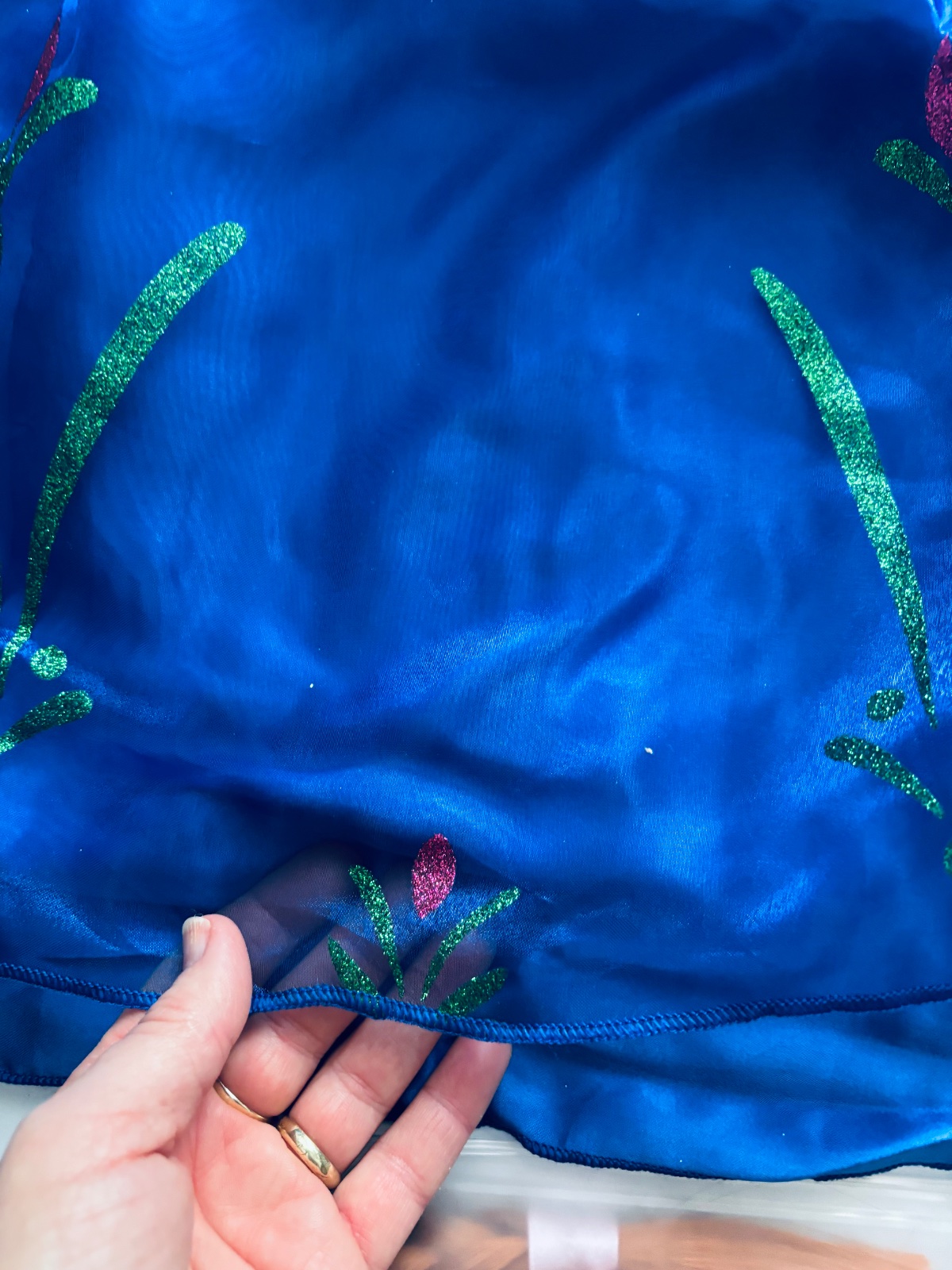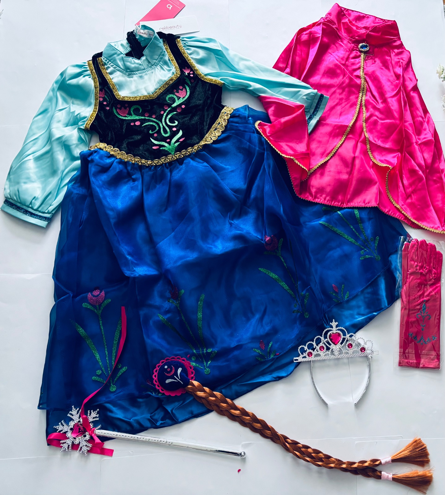 TOP STAV: nový , krásný bez vady. V zadu na zip , Třpitivý potisk . Součástí doplňky ( rukavice, korunka, cop , pelerína )