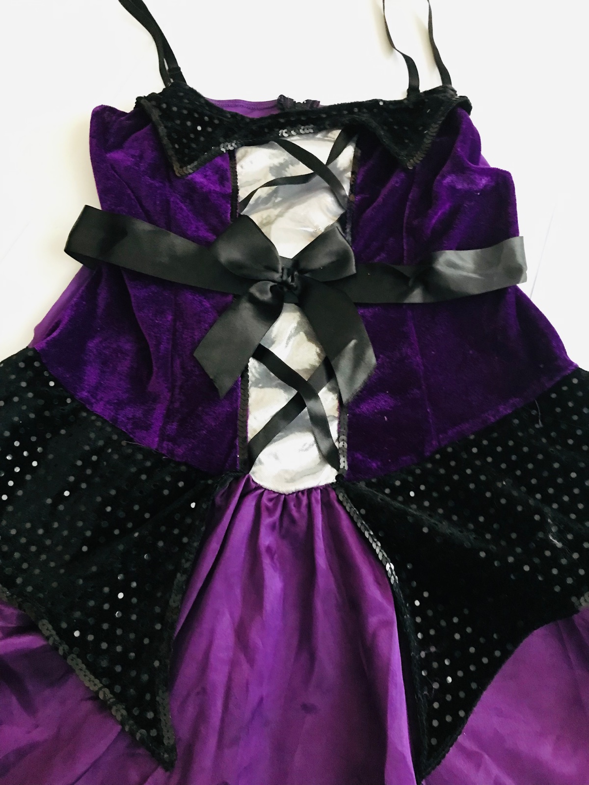 Bez známek použití , bez poškození . Krásně zdobené flitri , semišový a příjemný na omak . Ramínka jdou regulovat . V zadu na zip v pořádku jezdí .