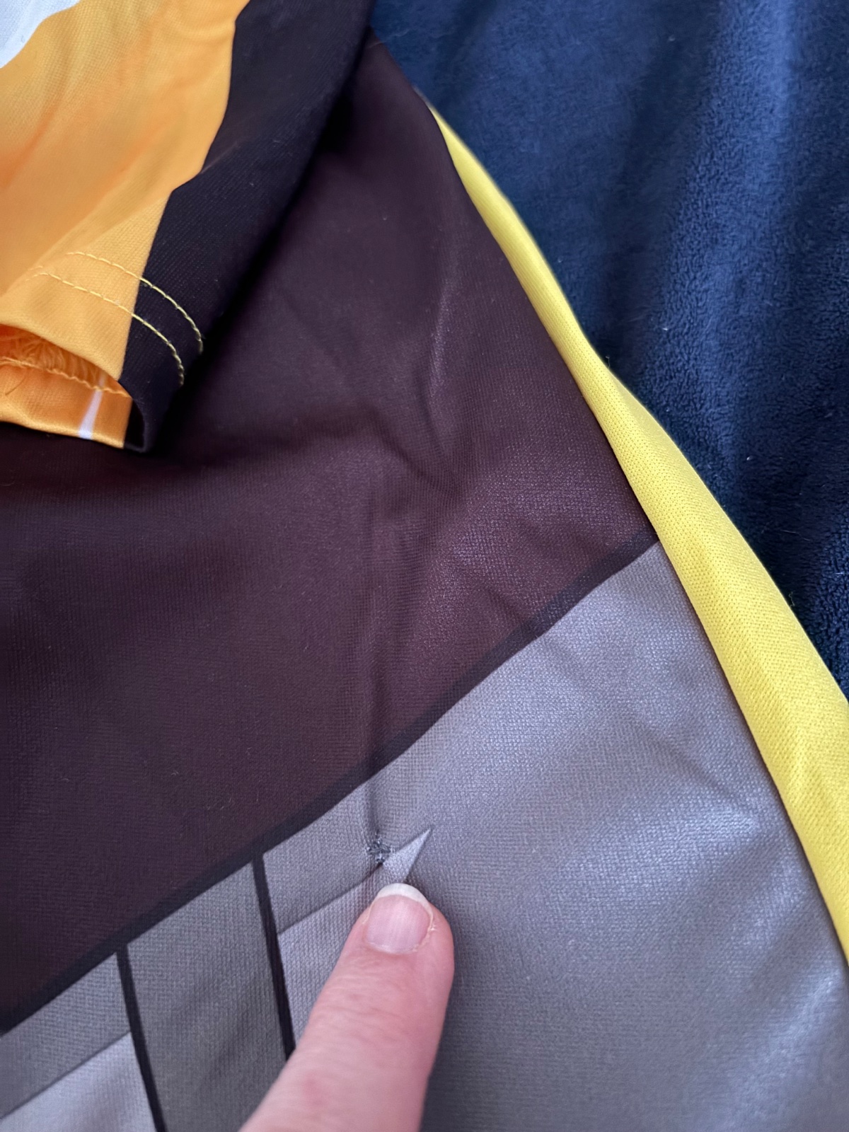DOBRÝ STAV - žmolíky na lemech, spíš na donošení, na doma, výrznější žmolík....u takovéto stavu oblečeni je vždy zohlednění v ceně .