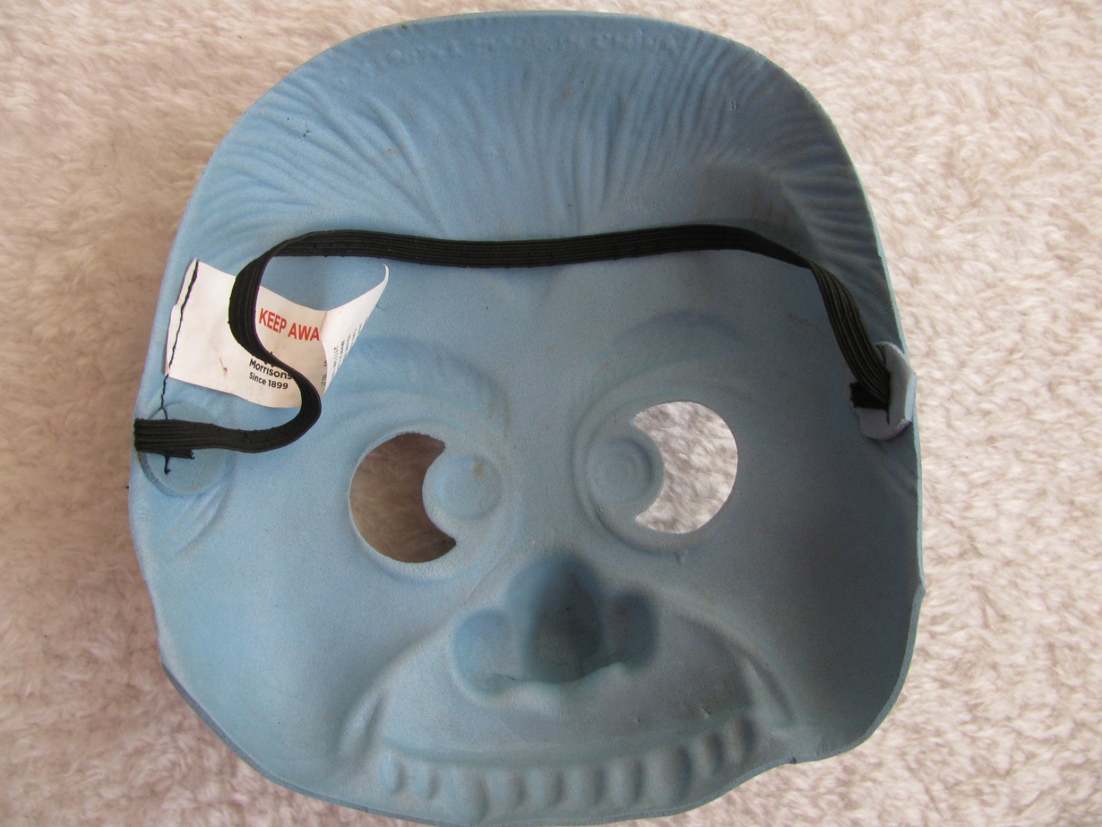 Hezká maska z lehké pěnové hmoty, na gumičku kolem hlavy, otvory pro oči a nos. Velikost universální. Bez vady,