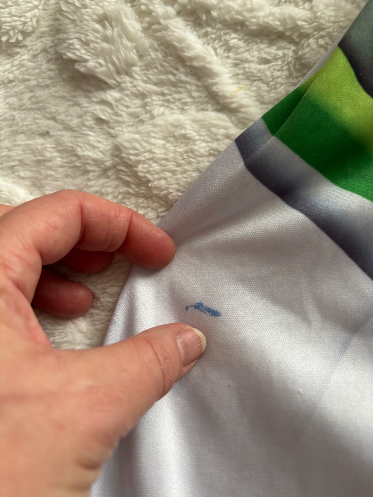 DOBRÝ STAV - žmolíky na lemech, spíš na donošení, na doma, výrznější žmolík....u takovéto stavu oblečeni je vždy zohlednění v ceně .