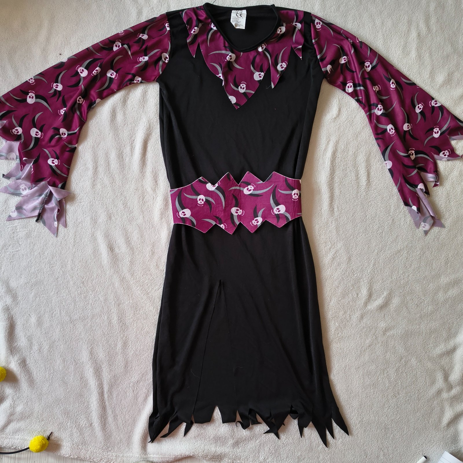 Kostým čarodějnice - na halloween, vel. 8-12 let, uvedena vel. M (128-140), pružný materiál, pásek na suchý zip, krásný stav, nastřižený rozparek