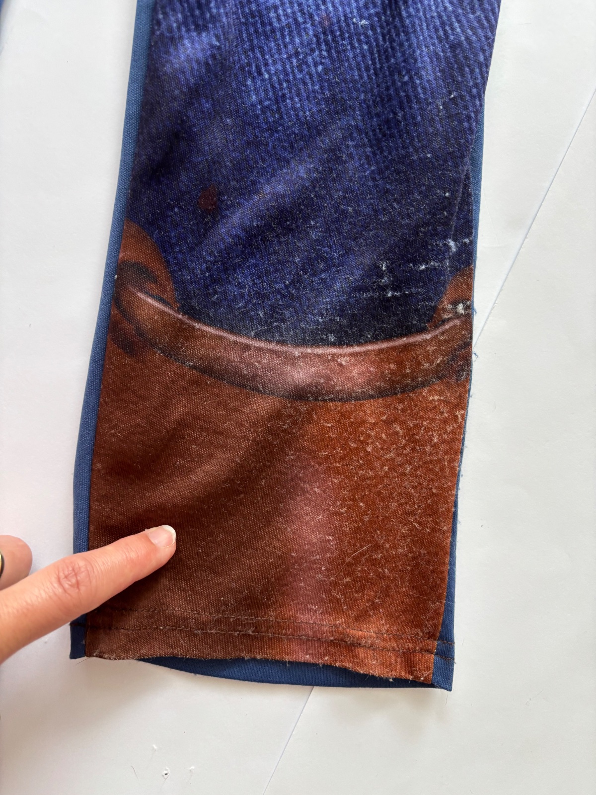 DOBRÝ STAV - žmolíky na lemech, spíš na donošení, na doma, výrznější žmolík....u takovéto stavu oblečeni je vždy zohlednění v ceně .