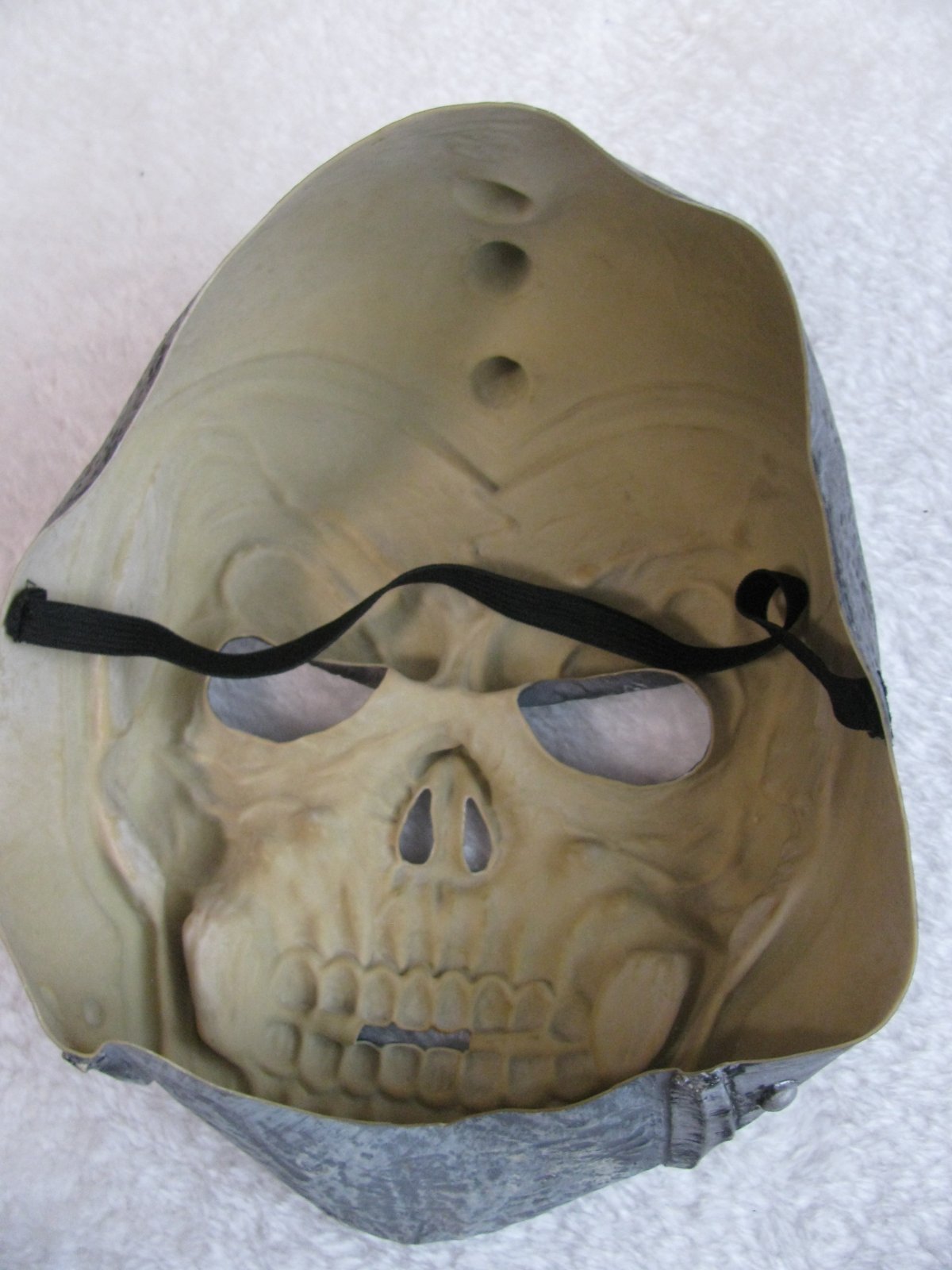 Parádní latexová maska - lebka, kolem hlavy na gumu, otvory pro oči, nos a pusu. Velikost universální.