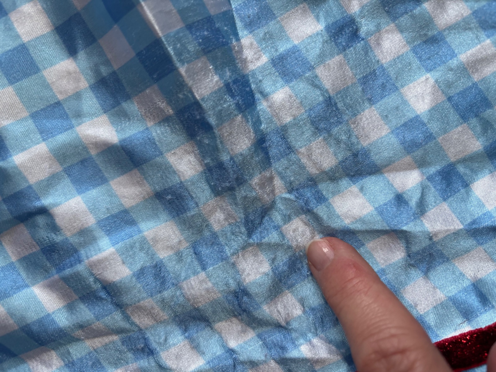 DOBRÝ STAV - žmolíky na lemech, spíš na donošení, na doma, výrznější žmolík....u takovéto stavu oblečeni je vždy zohlednění v ceně .