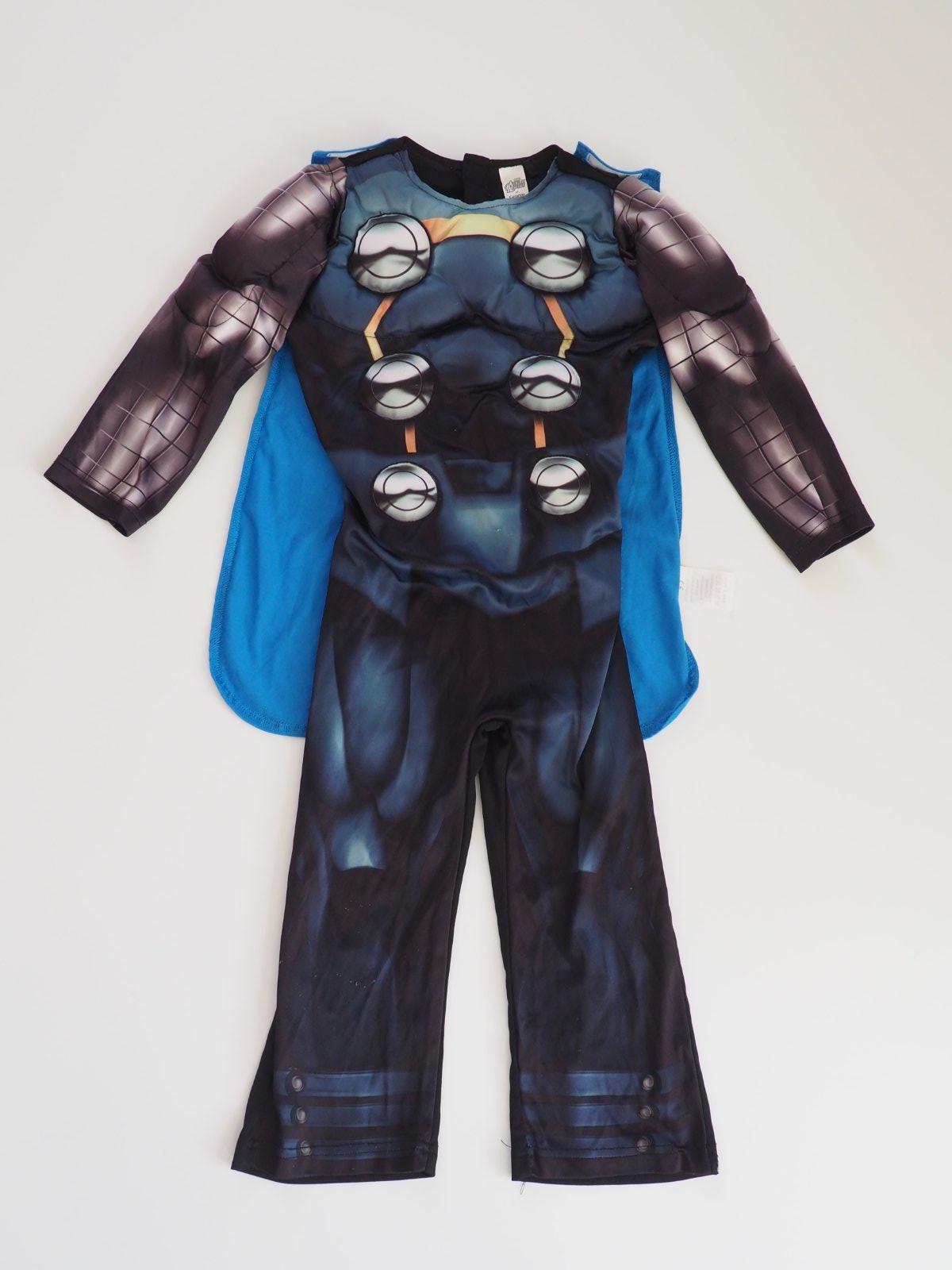 Kostým Thor s vypolstrovanými svaly a pláštěm.