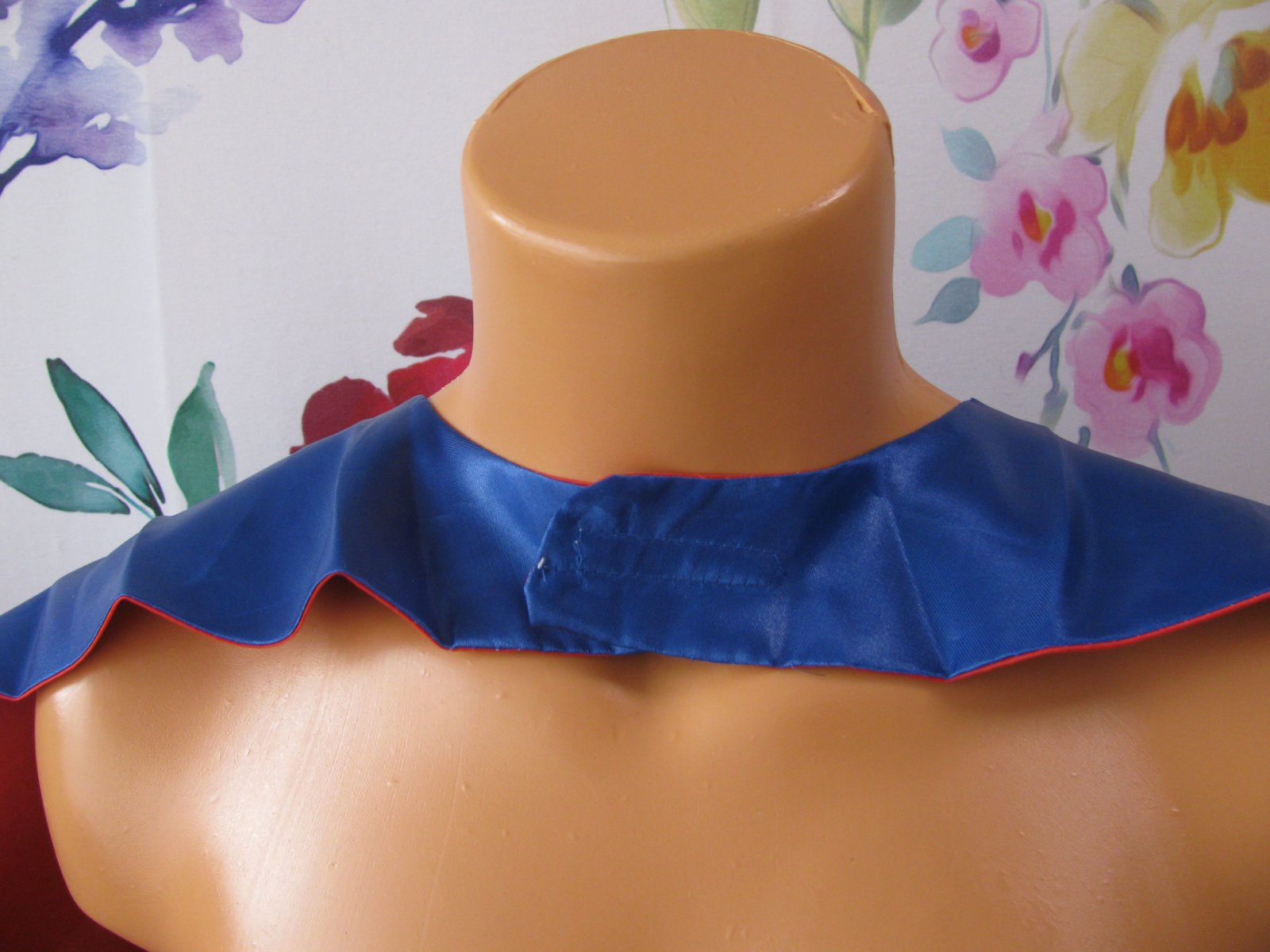 Krásný plášť na karneval, pod krkem zap. na suchý zip. Velikost není uvedena, uvádím odhadem, proto prosím pečlivě měřte, děkuji. 100% polyester.
