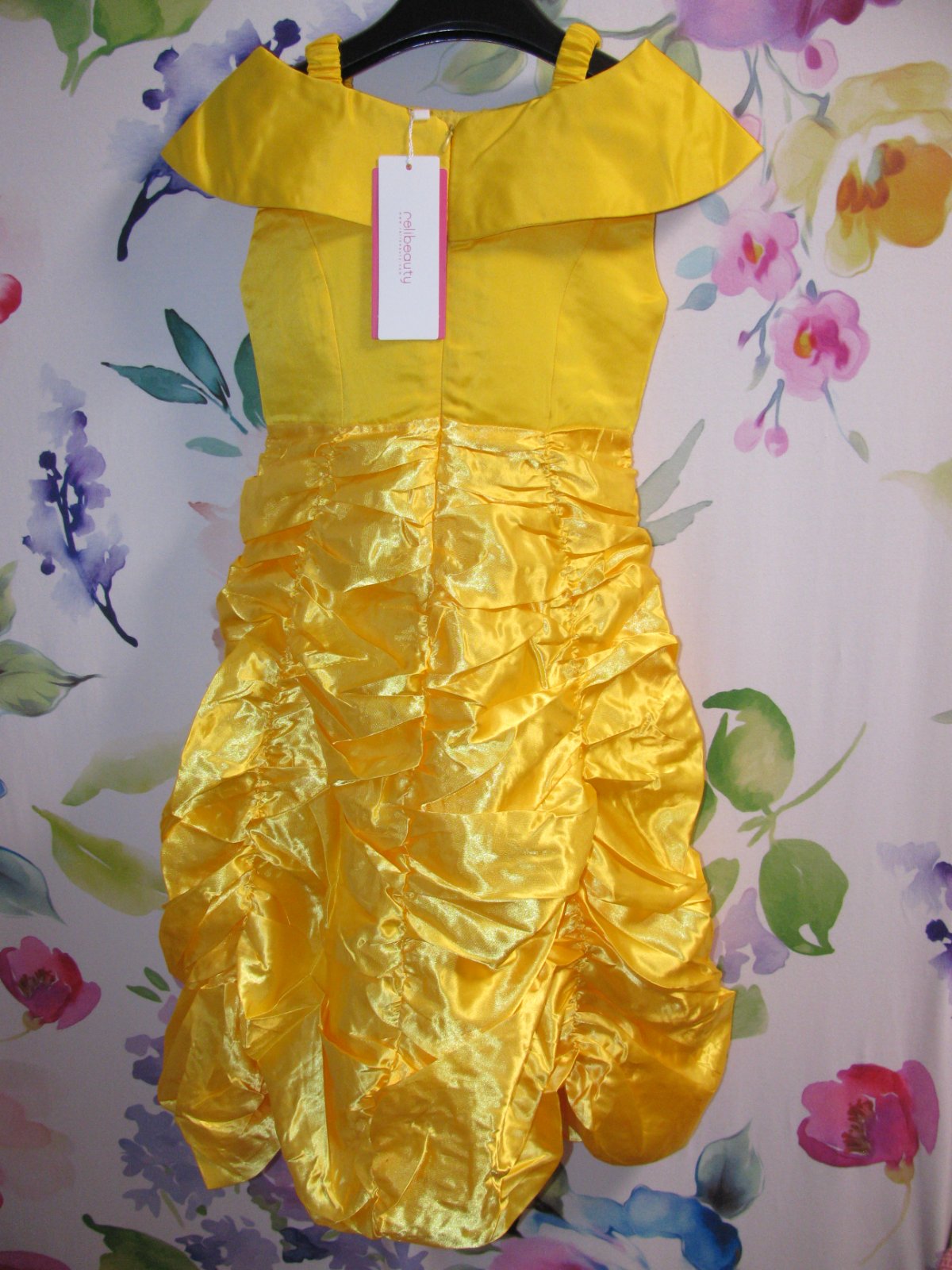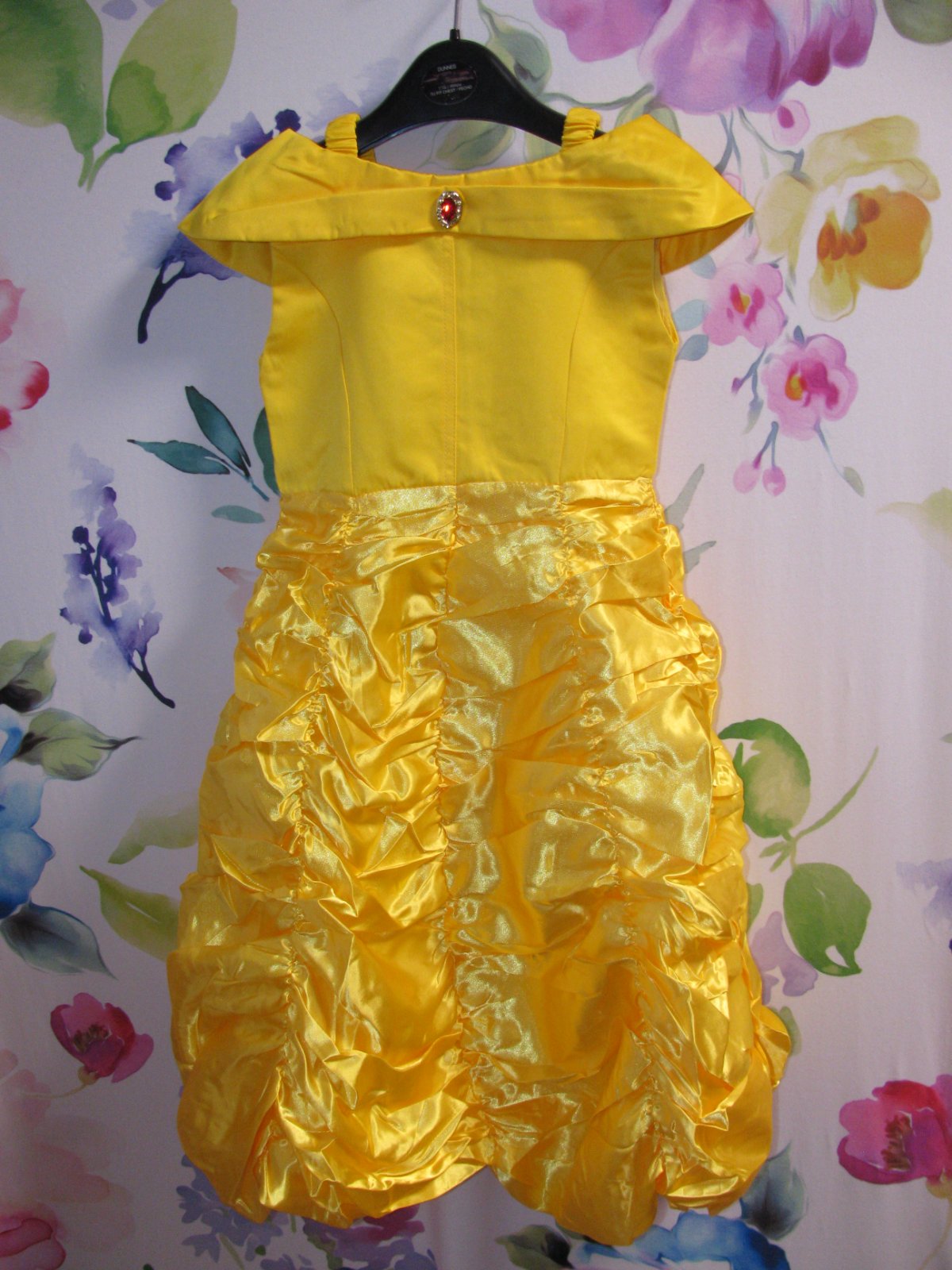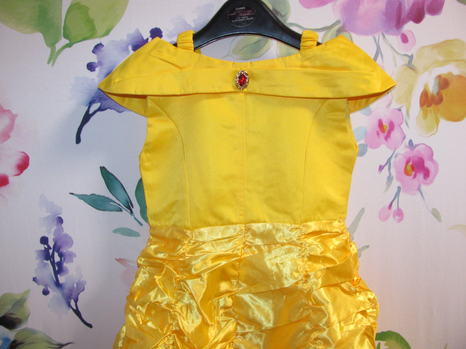 Nádherné saténové šaty pro princeznu Bellu, pružné řasení, šaty jsou podšité plátýnkem, ramínka pružné do gumy, v pase nejsou pružné, na zádech zip, brož, 100% polyester. Vhodné jako dárek.