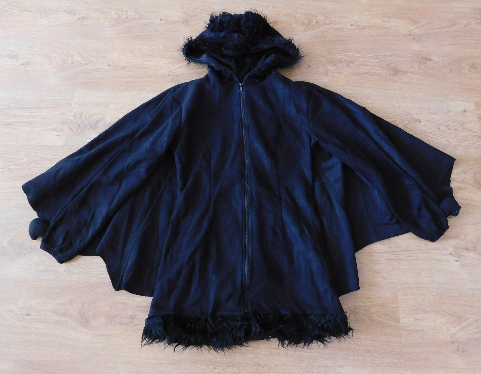 d.75cm,š.2x45cm,ruk.od krku 69cm,kapucka s oušky netopýra.Uvnitř křídel netopýra všitá teplá mikina
