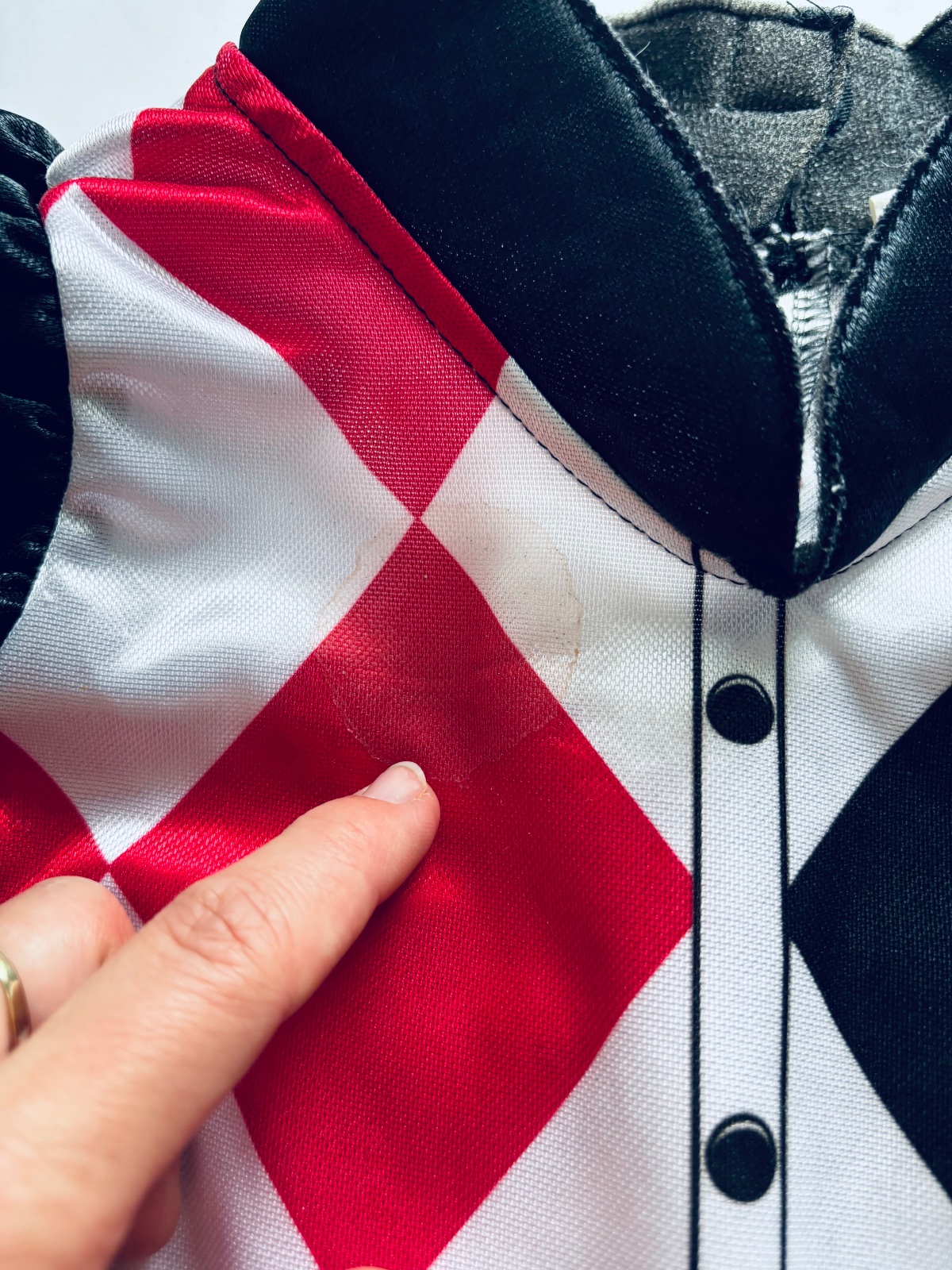 DOBRÝ STAV - žmolíky na lemech, spíš na donošení, na doma, výrznější žmolík....u takovéto stavu oblečeni je vždy zohlednění v ceně .