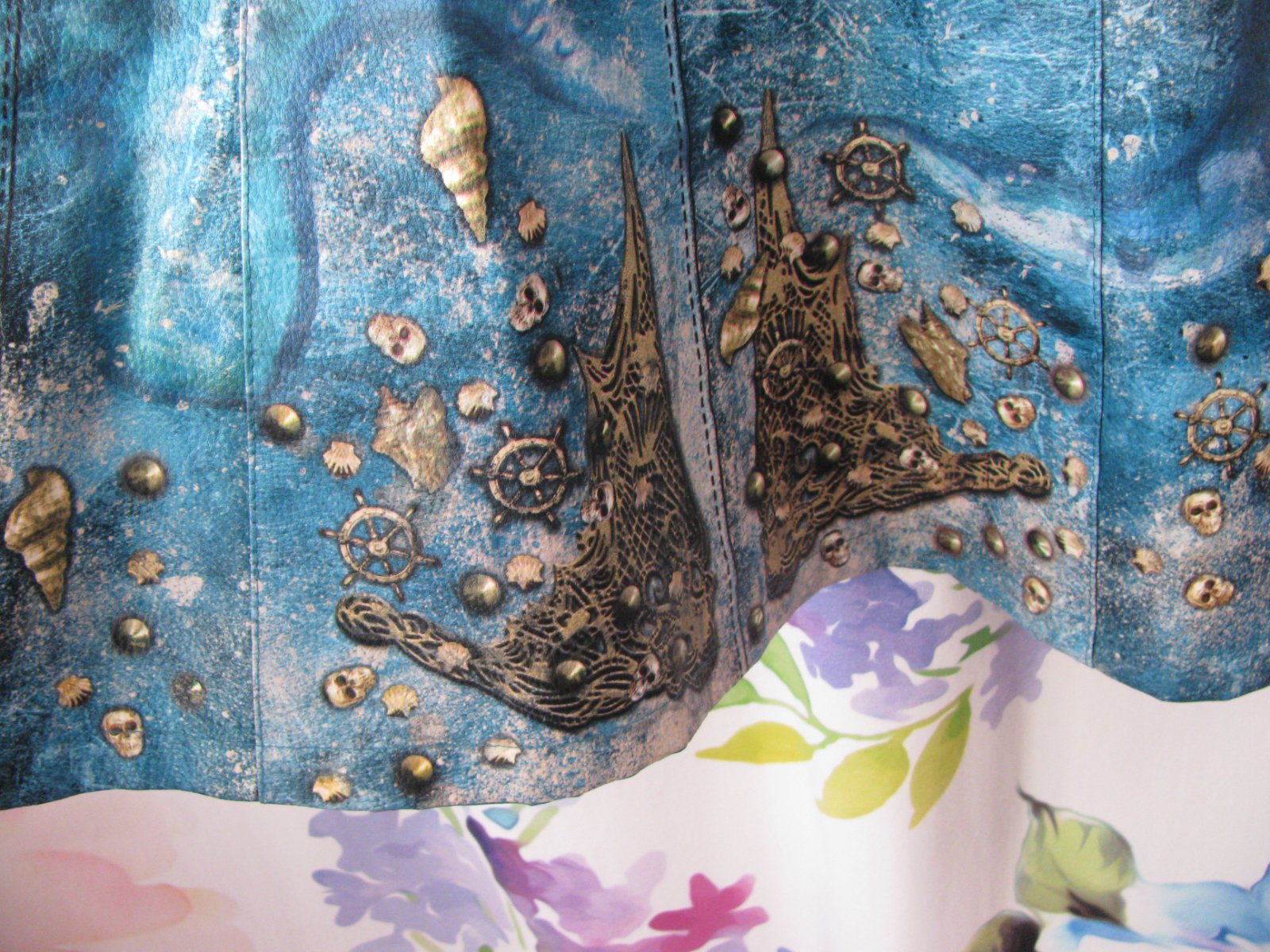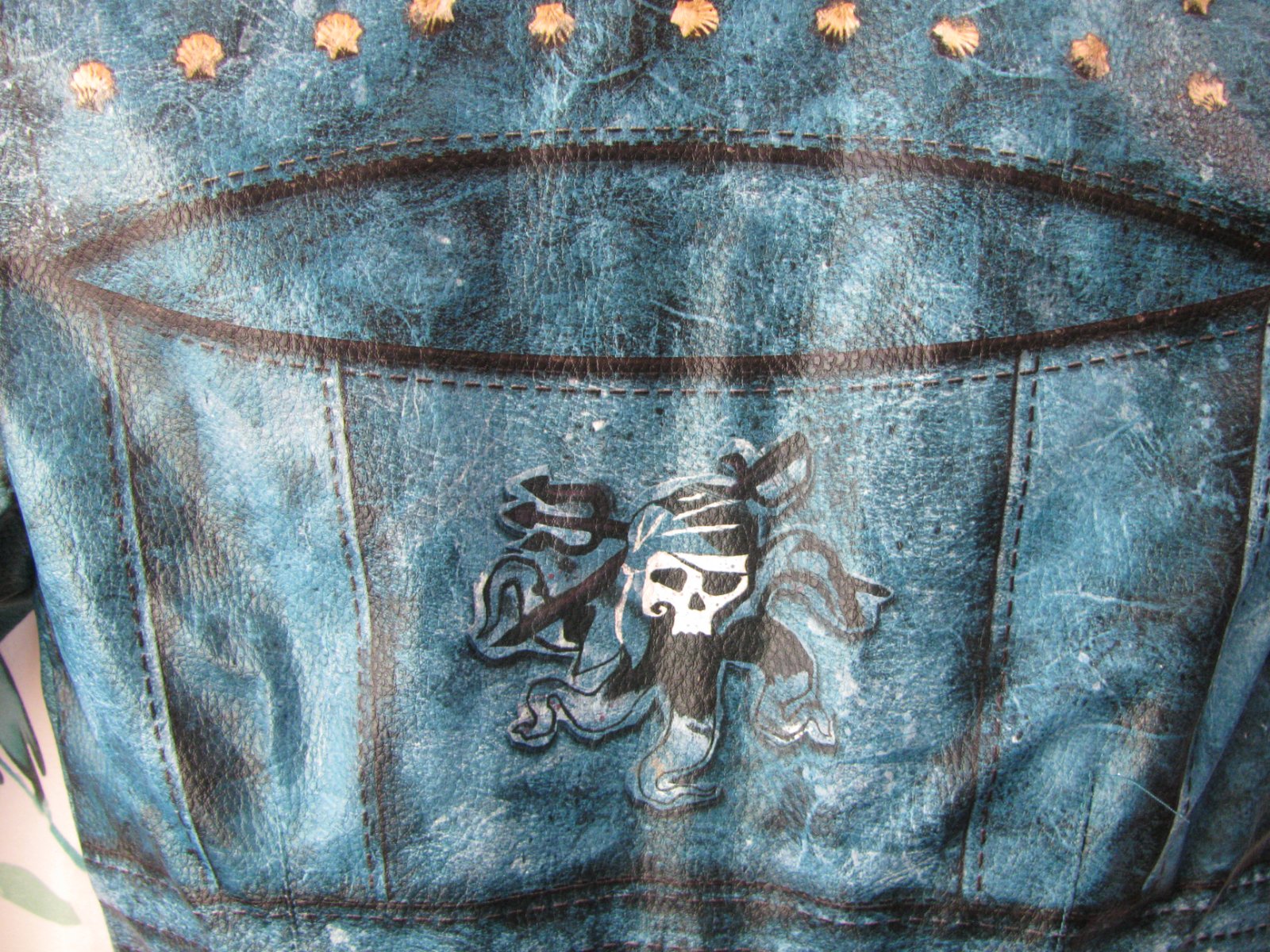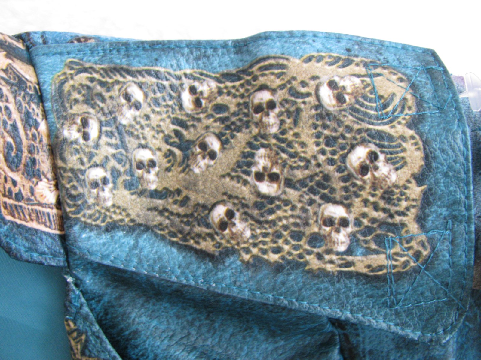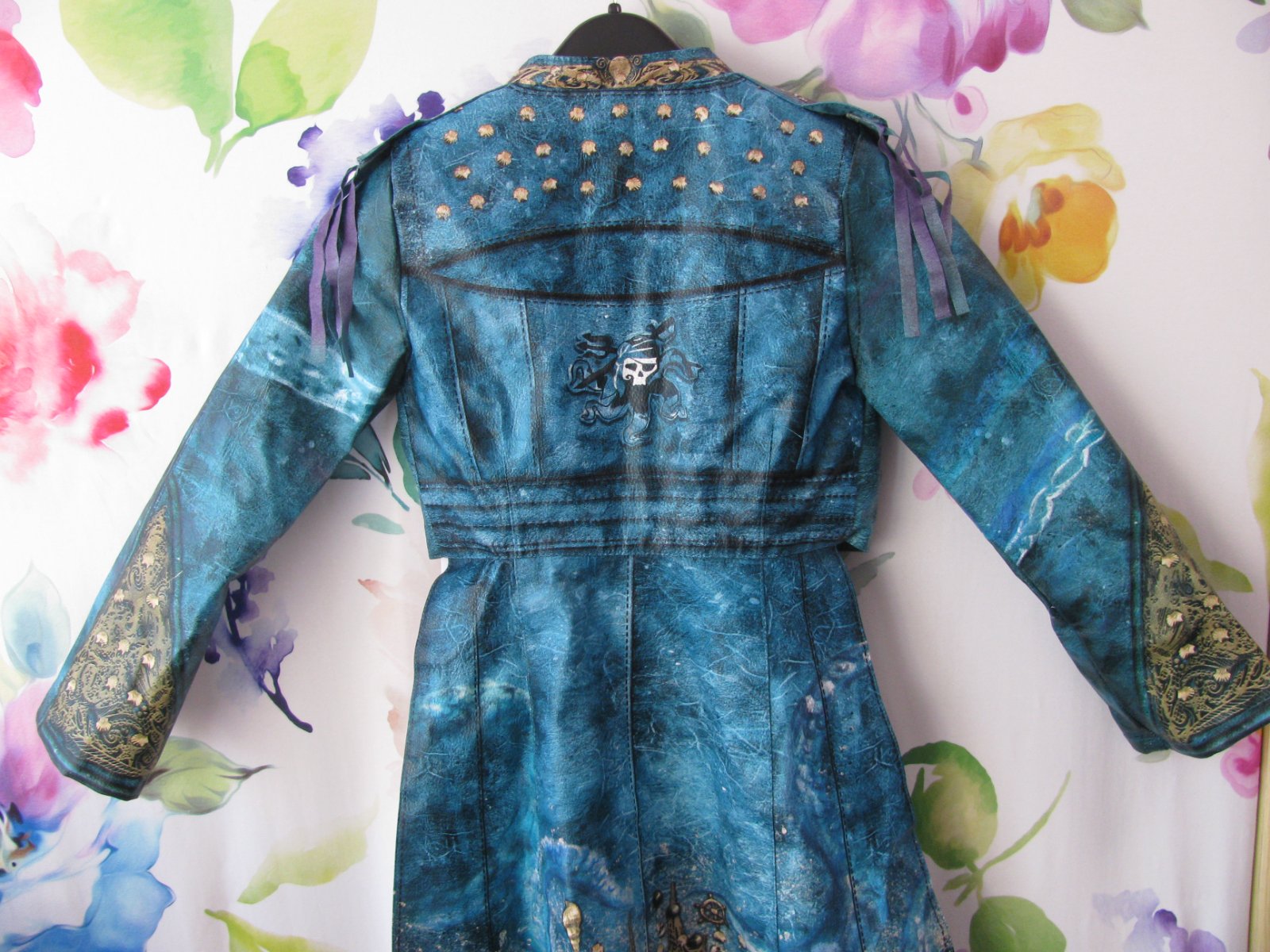 Plášť, kabát z umělé kůže, podšívka, bez zapínání, vyobrazení mořskými motivy a lebkami, ze série DESCENDANTS 2, / Následníci, 100% polyester, Bez vady, krásný stav.