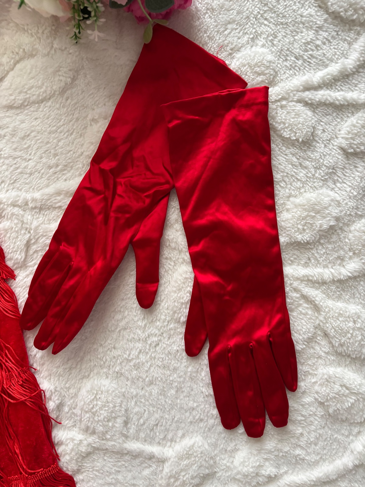 TOP STAV: šaty bez vady, na zip . Krásné , mnou přidané rukavice , na vnitřní straně nepatrně mapy a z vnitřní strany uvolněný šev . Rukavice elastické . Vhodné na malou , úzkou ruku .