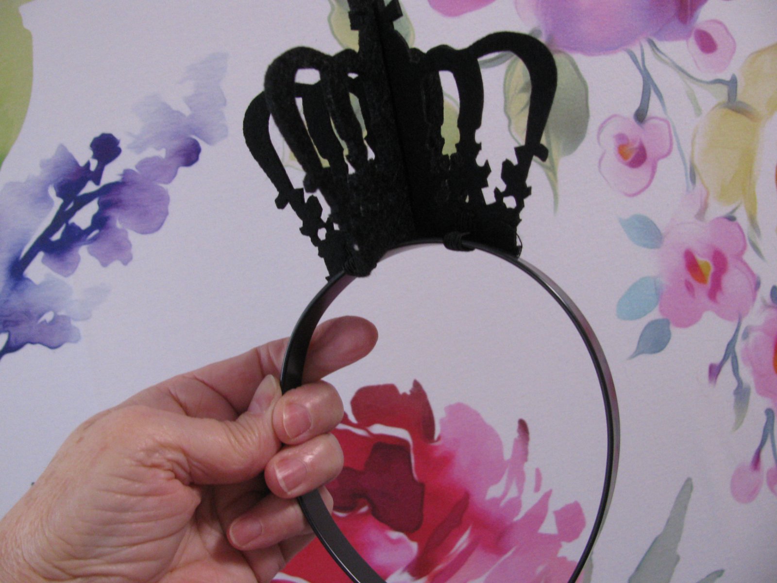 Černá 3D korunka s tvrzené plsti, plastová čelenka.