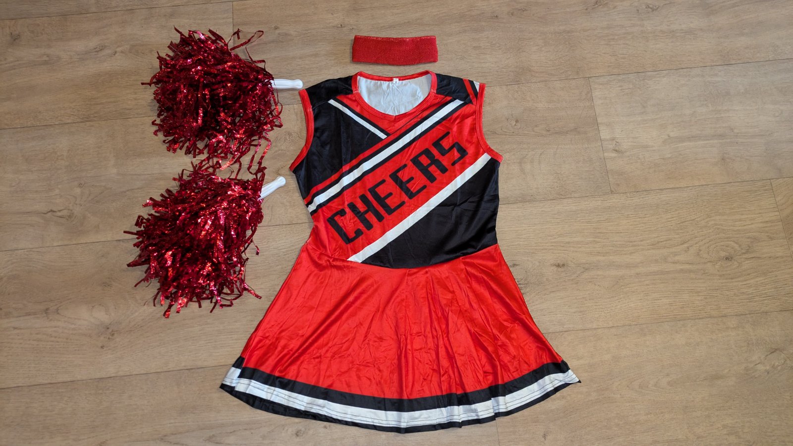 Tento kostým roztleskávačky je vyrobena z pohodlné strečové polyesterové tkaniny.