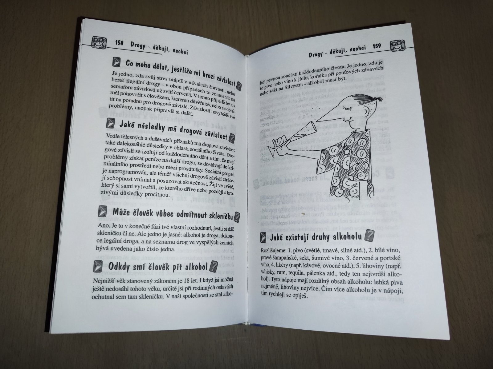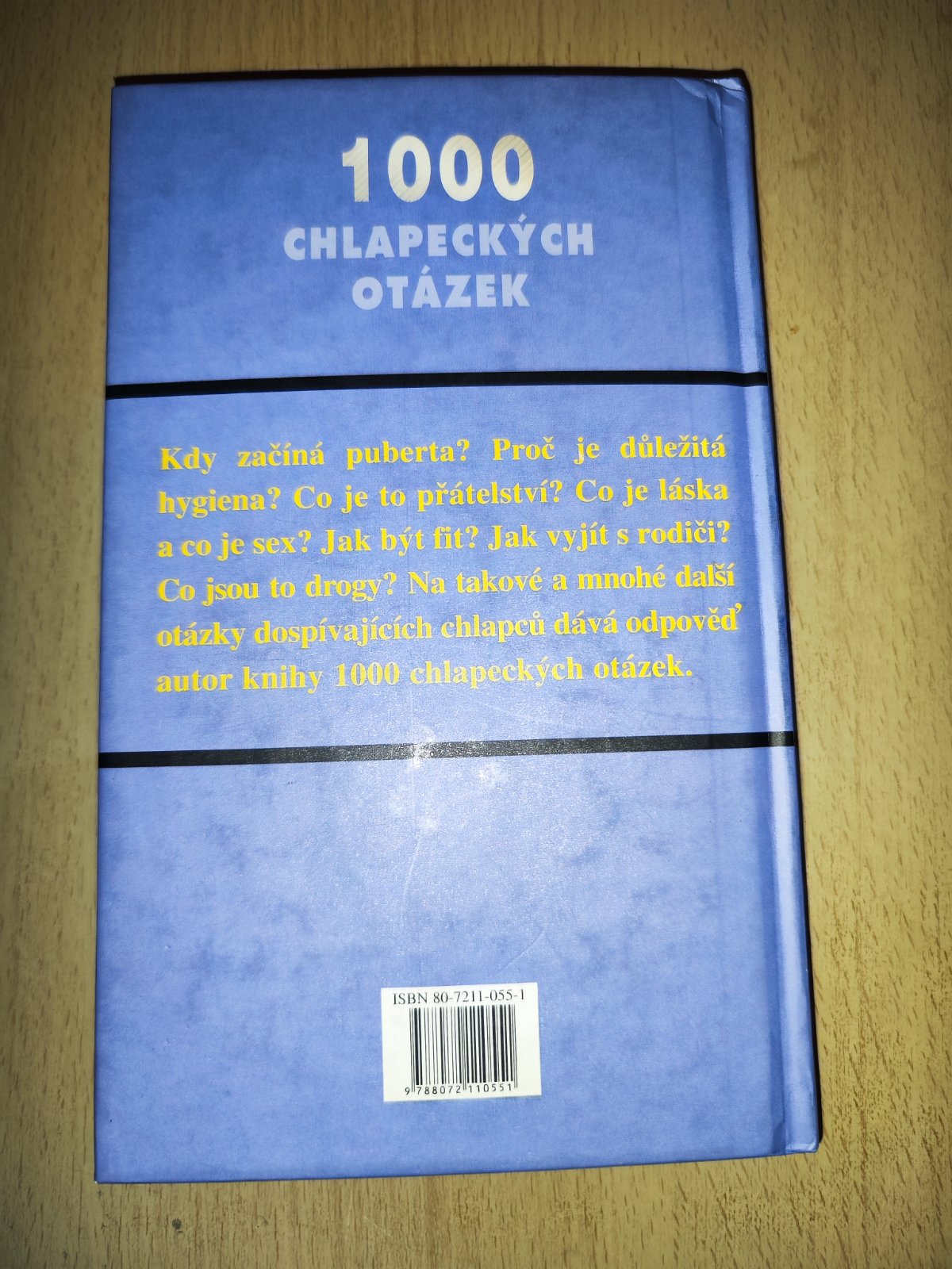 Prodám knihu 1000 chlapeckých otázek, napsal Tim Hüsch, vydalo nakladatelství Nava, počet stran 240. Ve stručných a výstižných odpovědích autor vysvětluje tělesné změny související s pohlavním dozráváním problémy s vzhledem - vousy, akné aj. Zabývá se přátelstvím, homosexualitou, zamilovaností, láskou i sexem, vztahy v rodině, komunikací s rodiči i ostatními lidmi. Stručně se věnuje otázkám péče o zdraví i problematice drog. Zabývá se rovněž otázkami souvisejícími s volbou povolání a životního poslání. Dospívající chlapci jistě ocení autorovu otevřenost i stručnost, rovněž vtipné ilustrace. Super stav, cena 70 Kč, v Brně možné osobní předání.