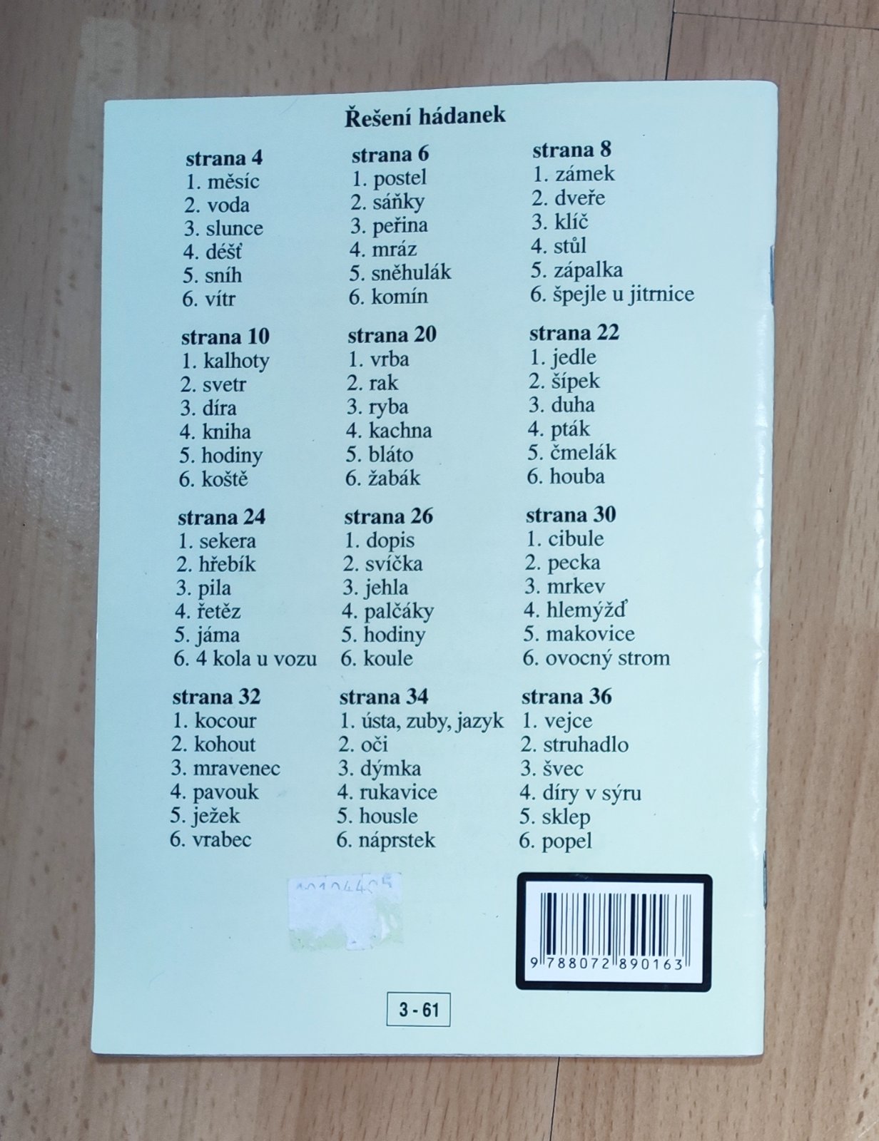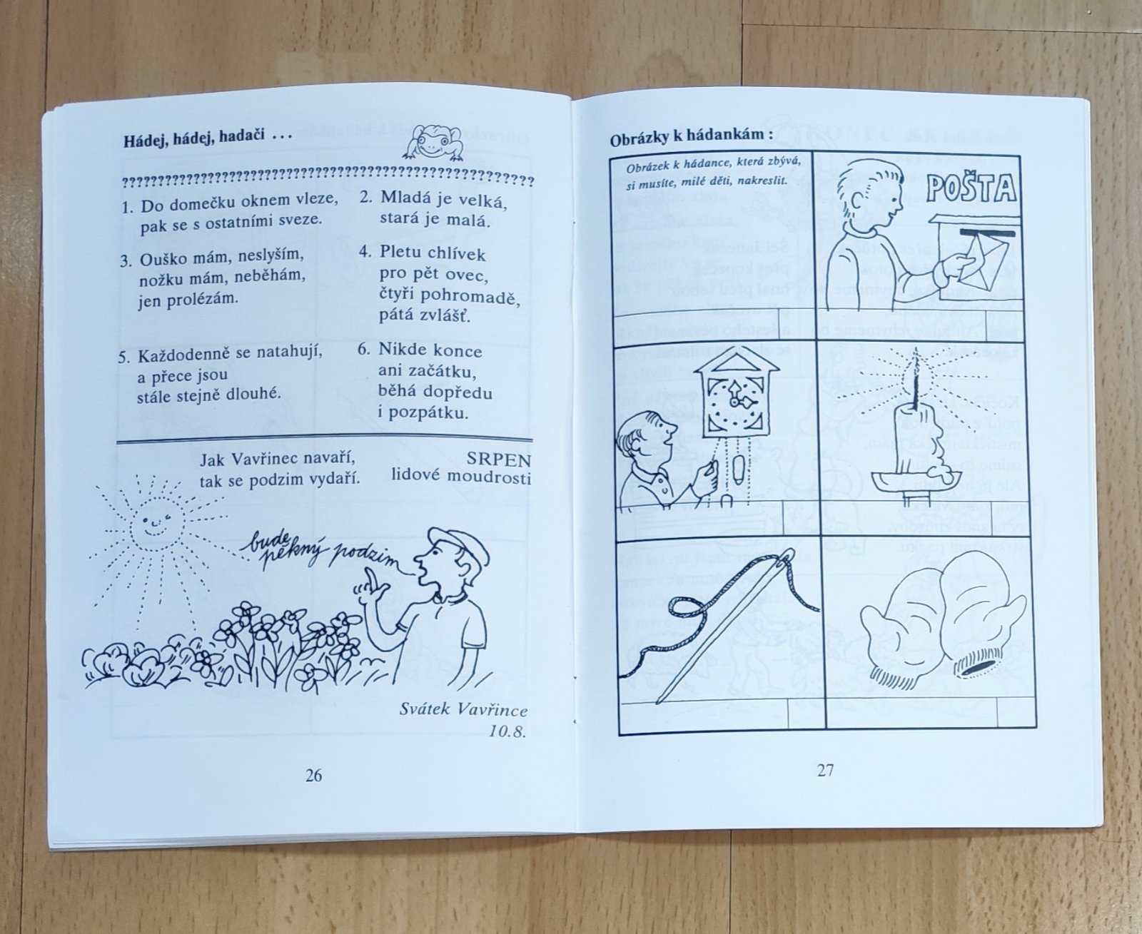 Prodám pracovní sešit Hádej, hádej, hadači, vydalo nakladatelství Nová škola. Zábavná knížka pro děti plná hádanek, říkadel a písniček. Při řešení hádanek jsou děti vedeni k zamyšlení se nad tím, který obrázek vyjadřuje řešení hádanky. Jedná se o velmi vhodný učební materiál k procvičení čtení s porozuměním. Cena 26 Kč, v Brně možné osobní předání.