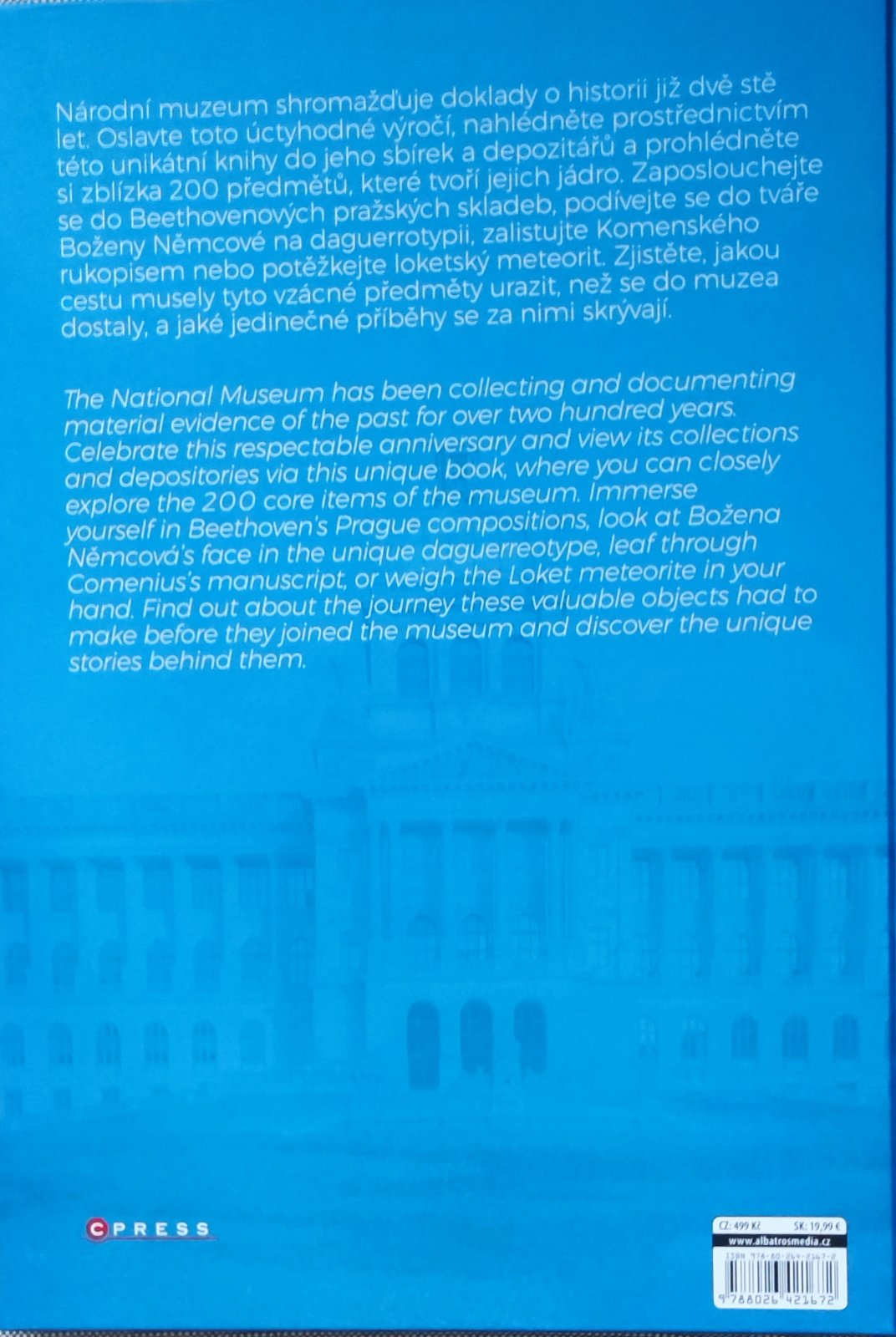 Publikace ukazuje na vybraných předmětech bohatství a různorodost sbírek Národního muzea.Národní muzeum shromažďuje doklady o historii již dvě stě let. Oslavte toto výročí, nahlédněte prostřednictvím této unikátní knihy do jeho sbírek a prohlédněte si zblízka 200 předmětů, které tvoří jejich jádro. Zaposlouchejte se do Beethovenových pražských skladeb, podívejte se do tváře Boženy Němcové na jedinečné daguerrotypii, zalistujte Komenského rukopisem nebo potěžkejte loketský meteorit. Zjistěte, jakou cestu musely tyto předměty urazit, než se do muzea dostaly, a jaké příběhy se za nimi skrývají. Rok vydání 2018.