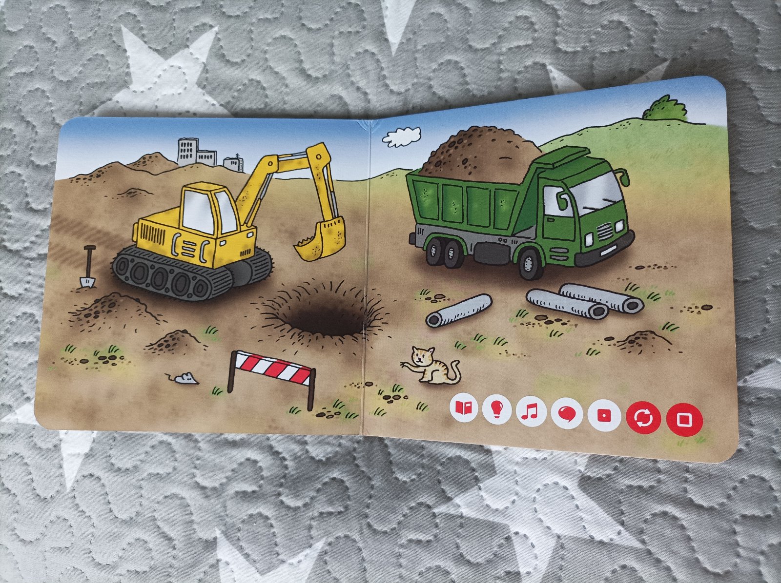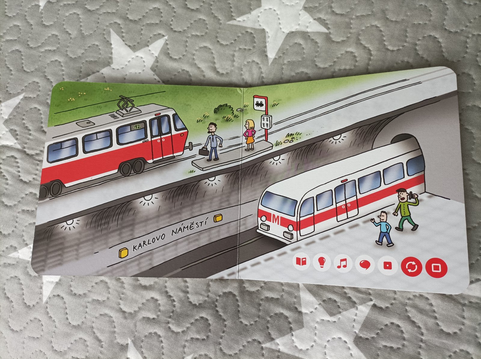 Obsahuje traktor, motorku, loď, autobus,, tramvaj, metro, bagr, náklaďák, vlak, autovrtulník a letadlo.