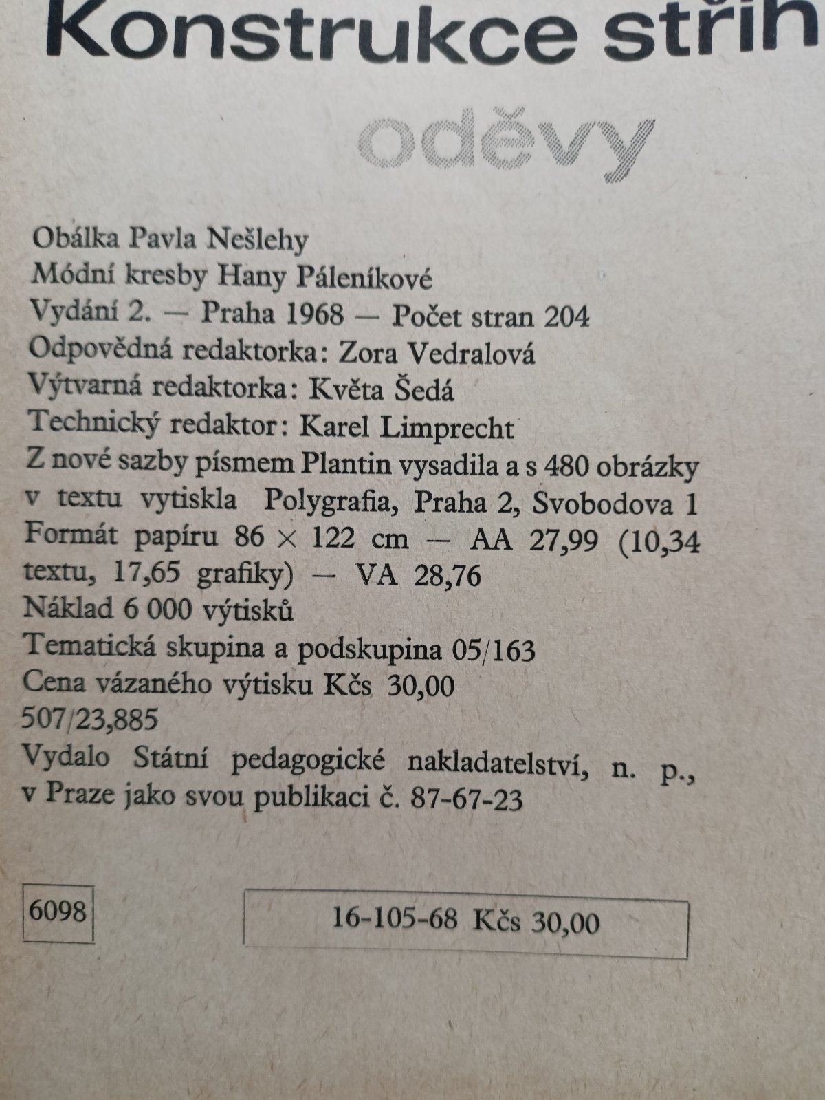Konstrukce střihů oděvy, r. vydání 1968, stav viz foto.