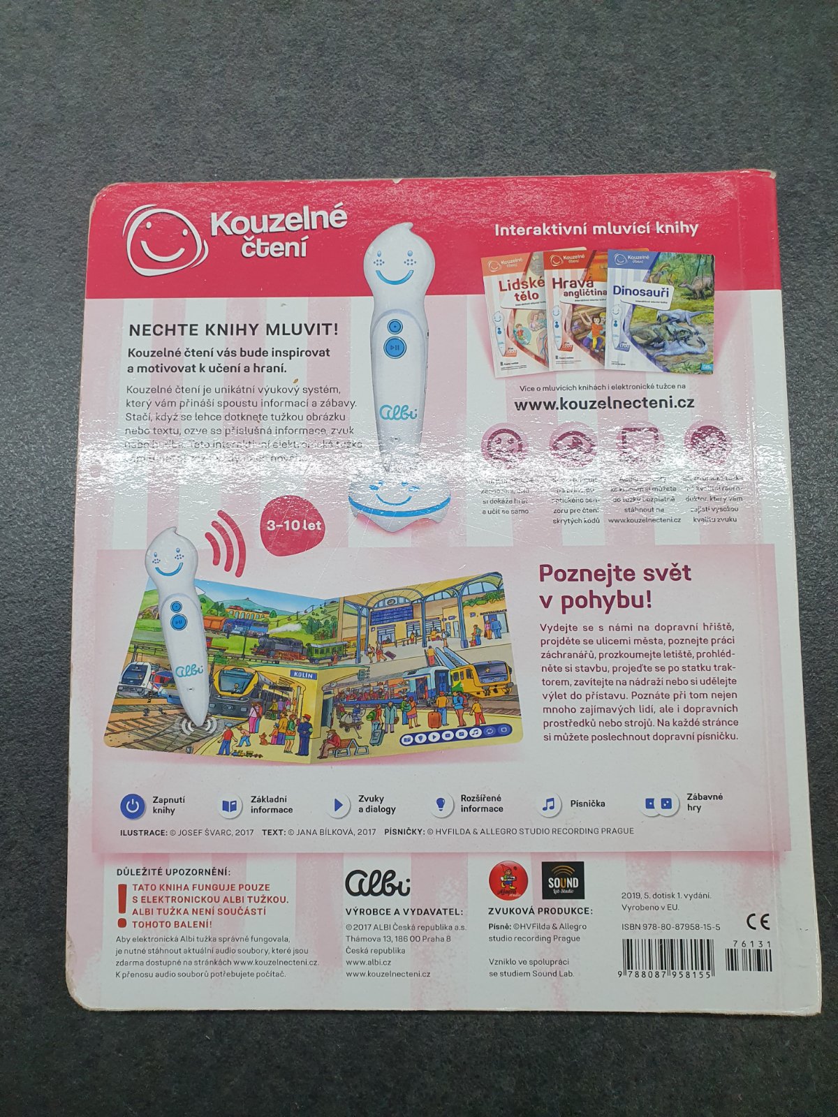 Kniha Doprava určená na čtení s Albi tužkou. Otkaky a oděrky na první a poslední straně z venku (viz. foto), na některých tranách ošoupaný střed u vazby, jinak čistá, nepopsaná.
