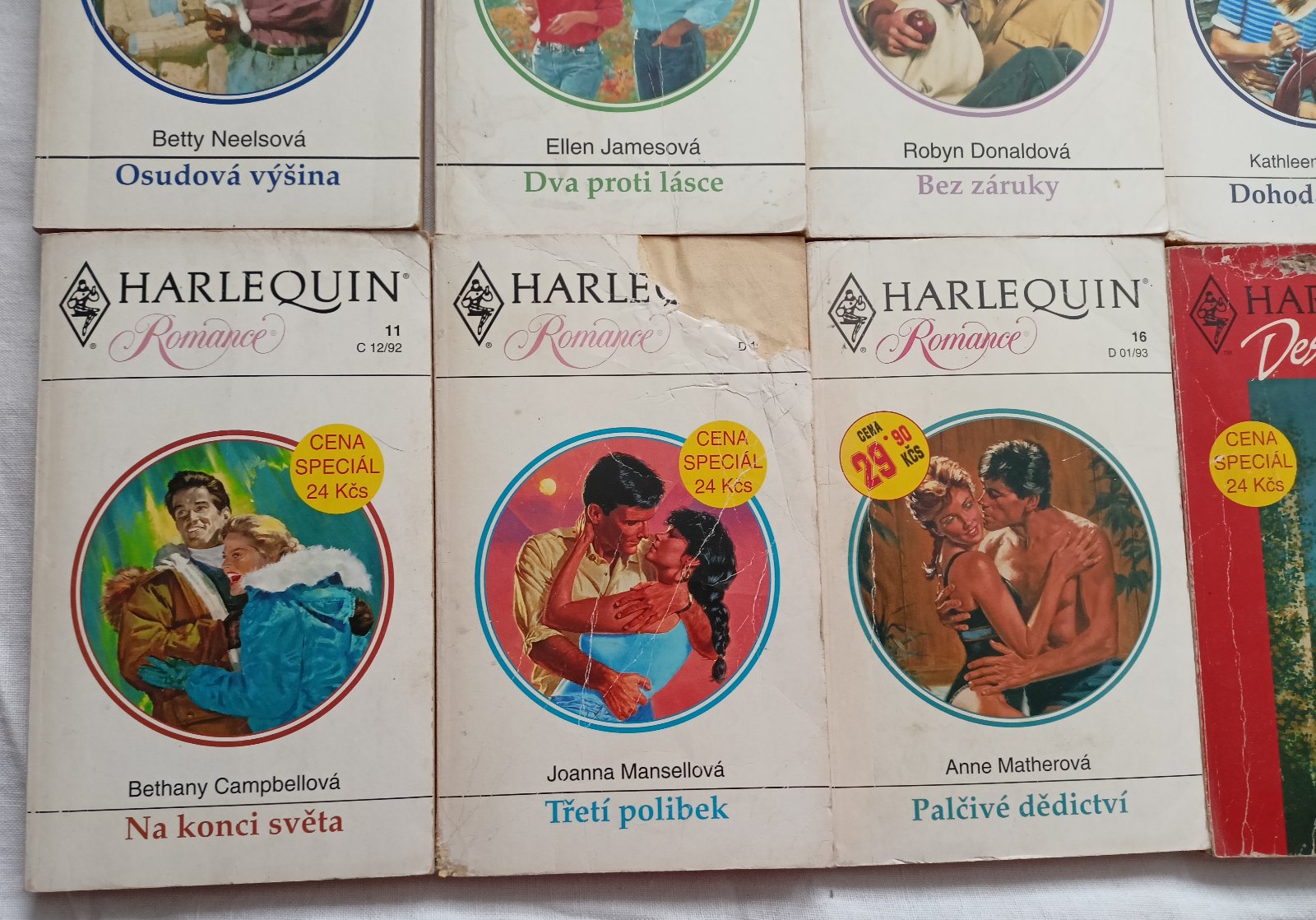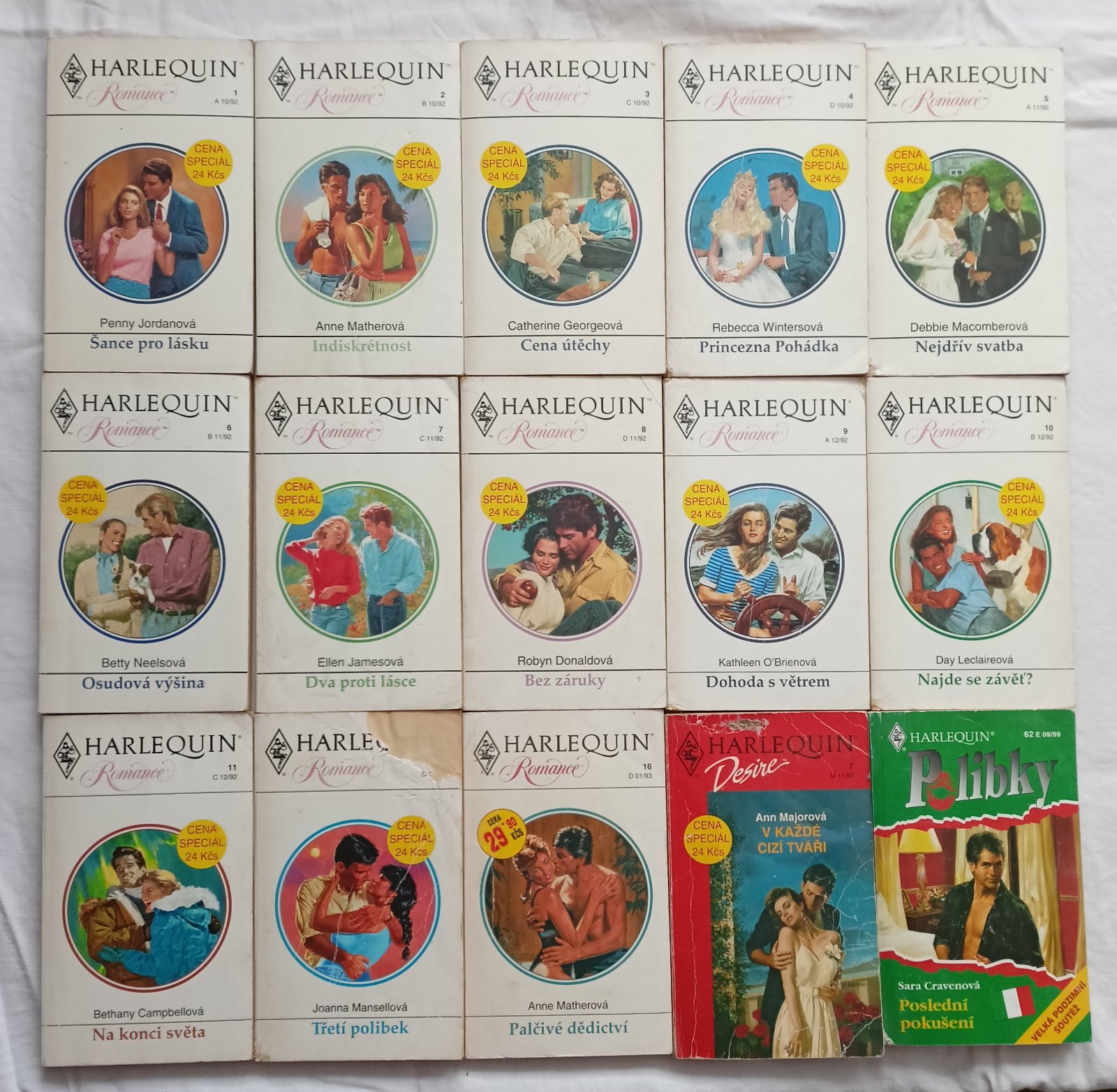 Harlequinky - Romance, Desire a Polibky, 15 ks, rok 1992, 1993 a 1999. Pár jich je v horším stavu, viz foto. 20 Kč/ks nebo 250 Kč za všechny.