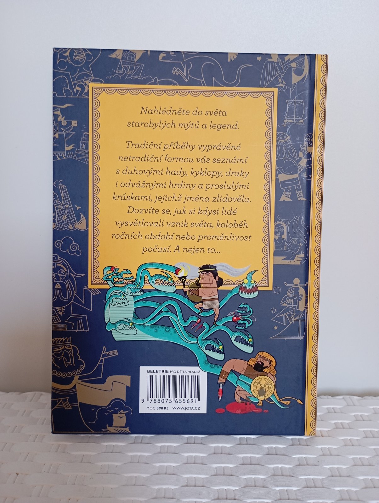 Na stránkách bohatě ilustrované knížky Dana Greena ožívají starobylé mýty a legendy z celého světa. Tradiční příběhy vyprávěné netradiční formou seznamují čtenáře s duhovými hady, kyklopy, draky i odvážnými hrdiny a proslulými kráskami, jejichž jména zlidověla. Známé i neznámé pověsti ukazují, jak si kdysi lidé vysvětlovali vznik světa, koloběh ročních období nebo proměnlivost počasí. Kdoví, třeba opravdu lze zastavit slunce, najít moudrost v hloubi temného lesa, sestoupit do podsvětí a ukonejšit tříhlavého psa koláčkem. Trójského dřevěného koně vymyslel Odysseus, z doby snů povstalo všechno živé i neživé, Havaj kdysi vytáhl ze dna moře zpupný Maui a hromový pták chrání lidi ze špičky totemu.