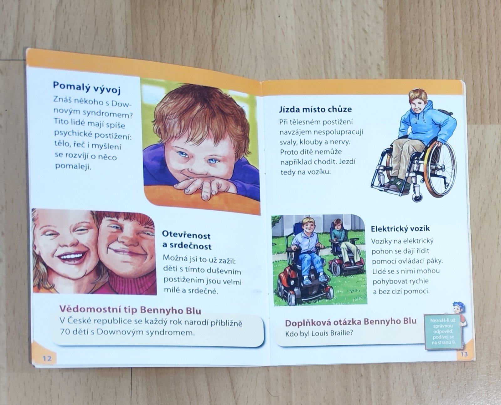 Prodám knihu Benny Blu Každý je jedinečný – odlišnost je normální. Benny Blu poznává lidi s postižením. Ukazuje ostatním, jak se jim s jejich omezením žije. Kdo byl Louis Braille? Co znamená inkluze? Tato kniha podporuje empatii, respekt a porozumění. Cena 30 Kč, v Brně možné osobní předání.