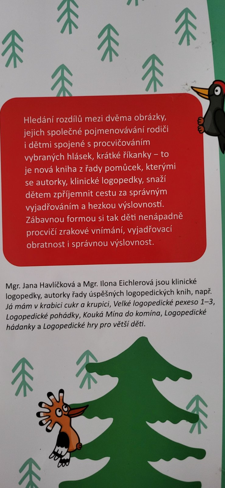 Děti hledají rozdíly mezi dvěma obrázky, procvičují se vybrané hlásky, krátké říkanky - používáno v logopedii.