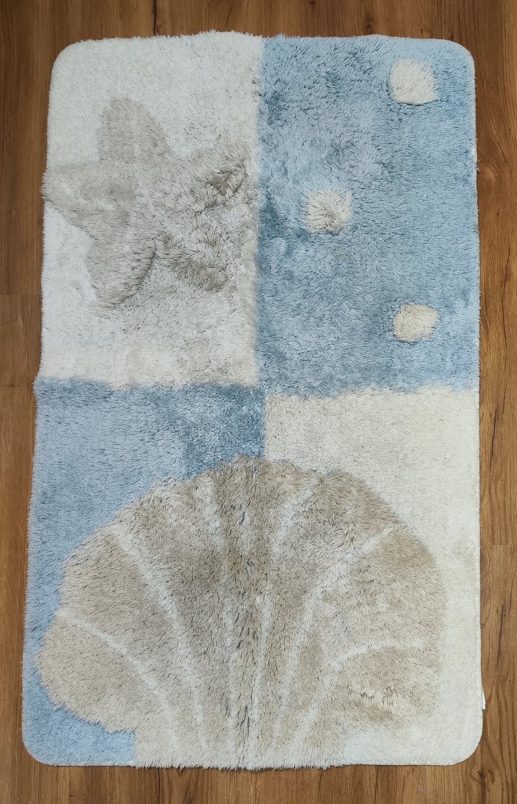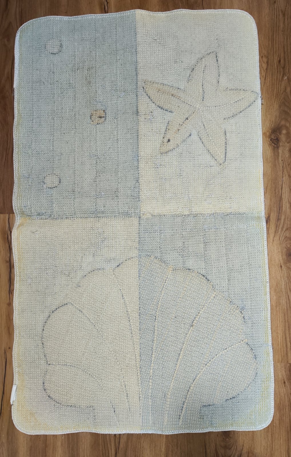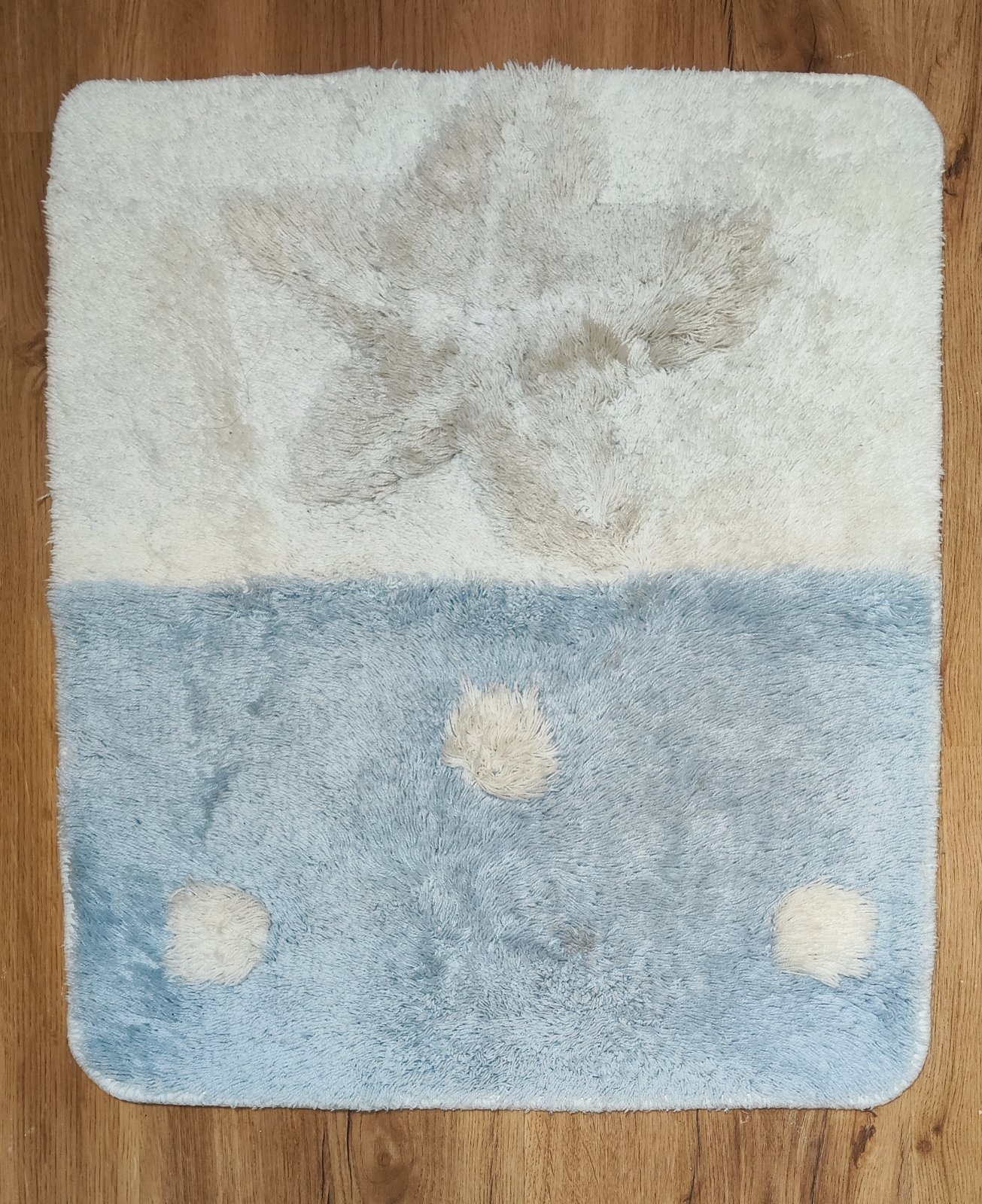 Prodám modrobílou sadu tří koupelnových předložek, kupované dohromady jako komplet. Rozměry: velká – 100 x 59, 5 cm; střední 59 x 51 cm; malá 57, 5 x 38 cm. Nafoceno zepředu i zezadu, aby byl vidět skutečný stav. Zepředu jsou v pěkném stavu, na zadní straně je již vidět opotřebení z používání. Po rekonstrukci koupelny se nám už barevně nehodí. Cena za vše 180 Kč, v Brně možné osobní předání.