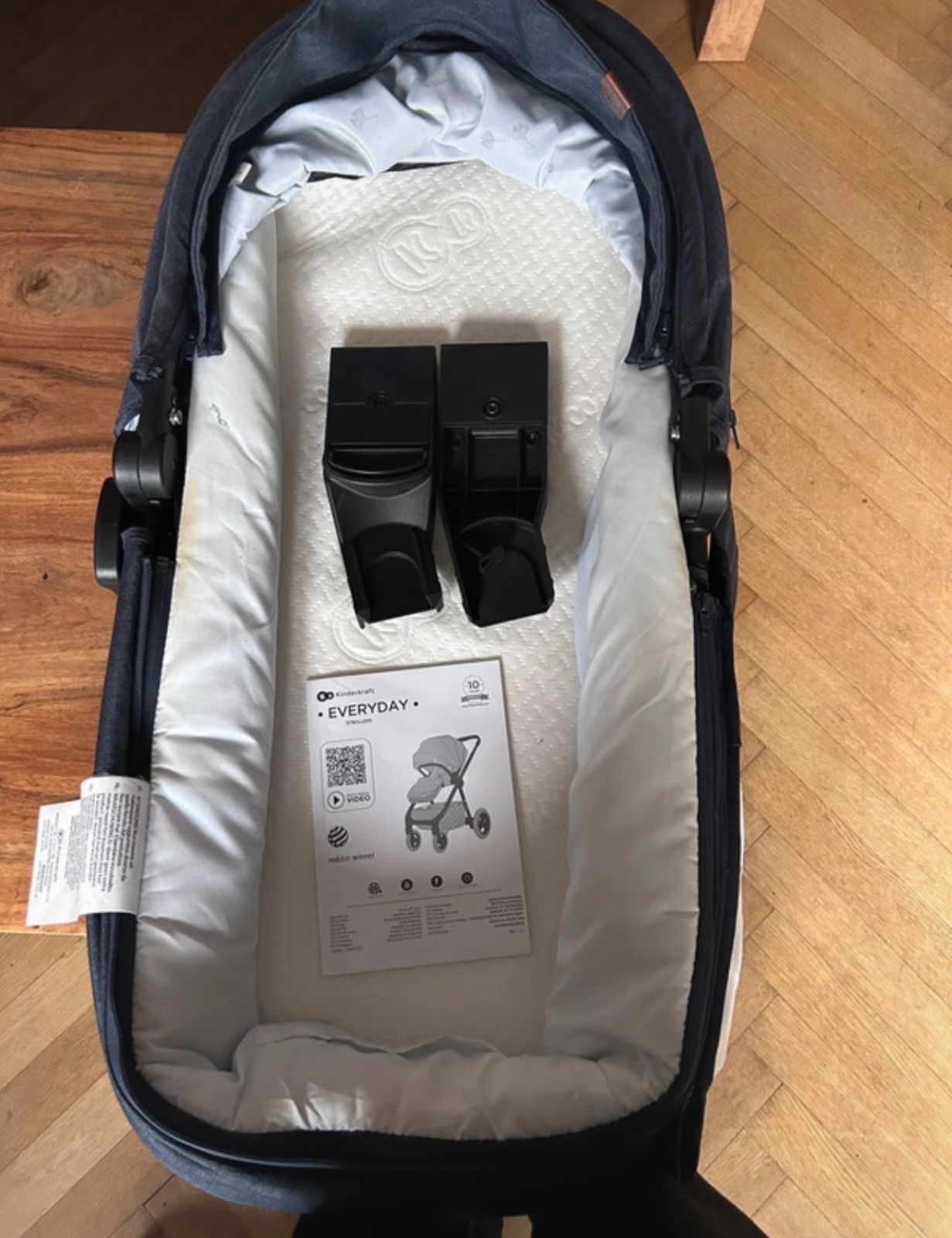 Kinderkraft kombinovaný 2v1 EVERYDAY Denim Blue - vše v pořádku, po jednom dítku, vanička používána 6 měsíců a pak sporťák něco přes rok - když se malý naučil běhat, tak do kočárku už nechtěl