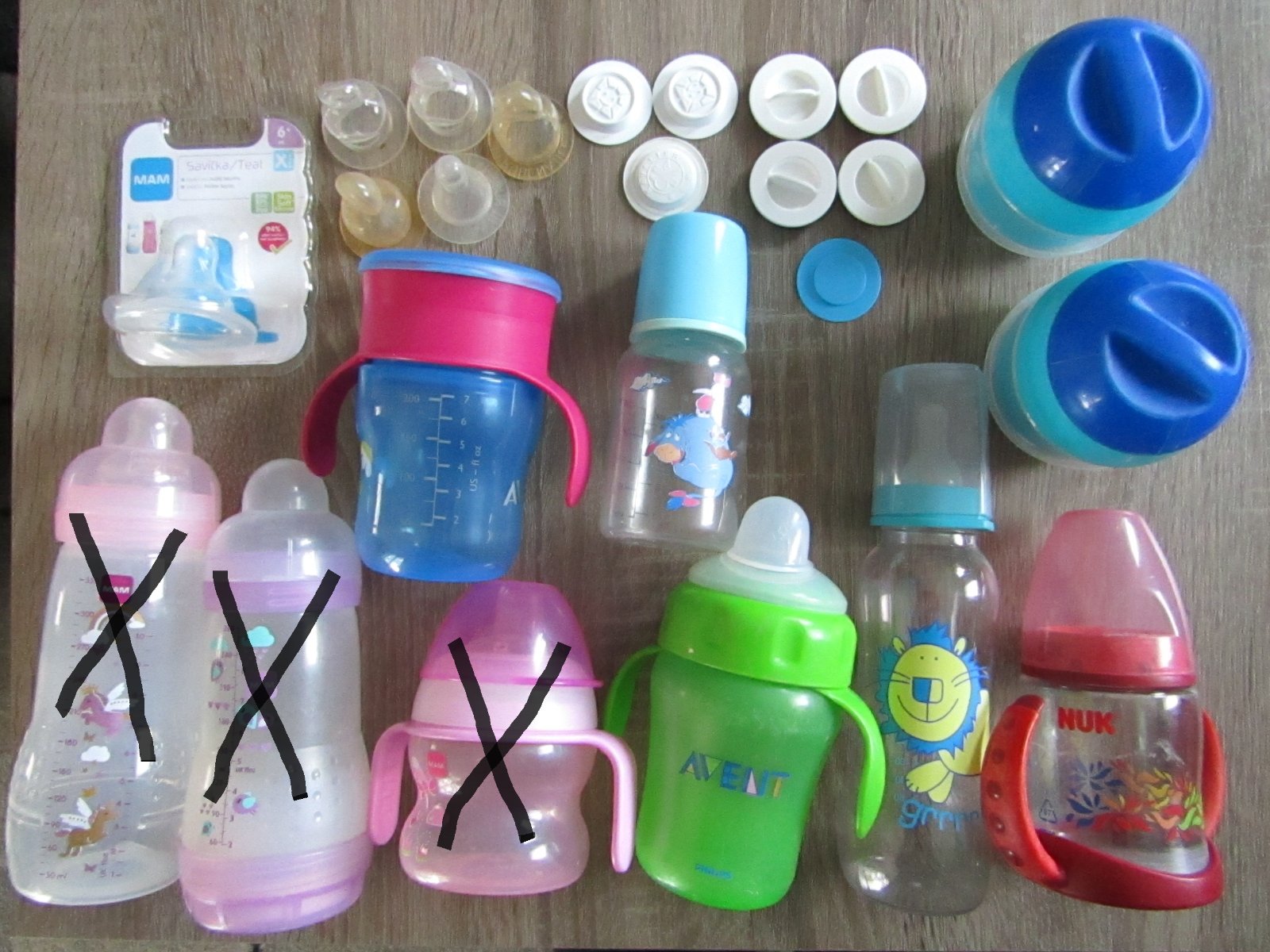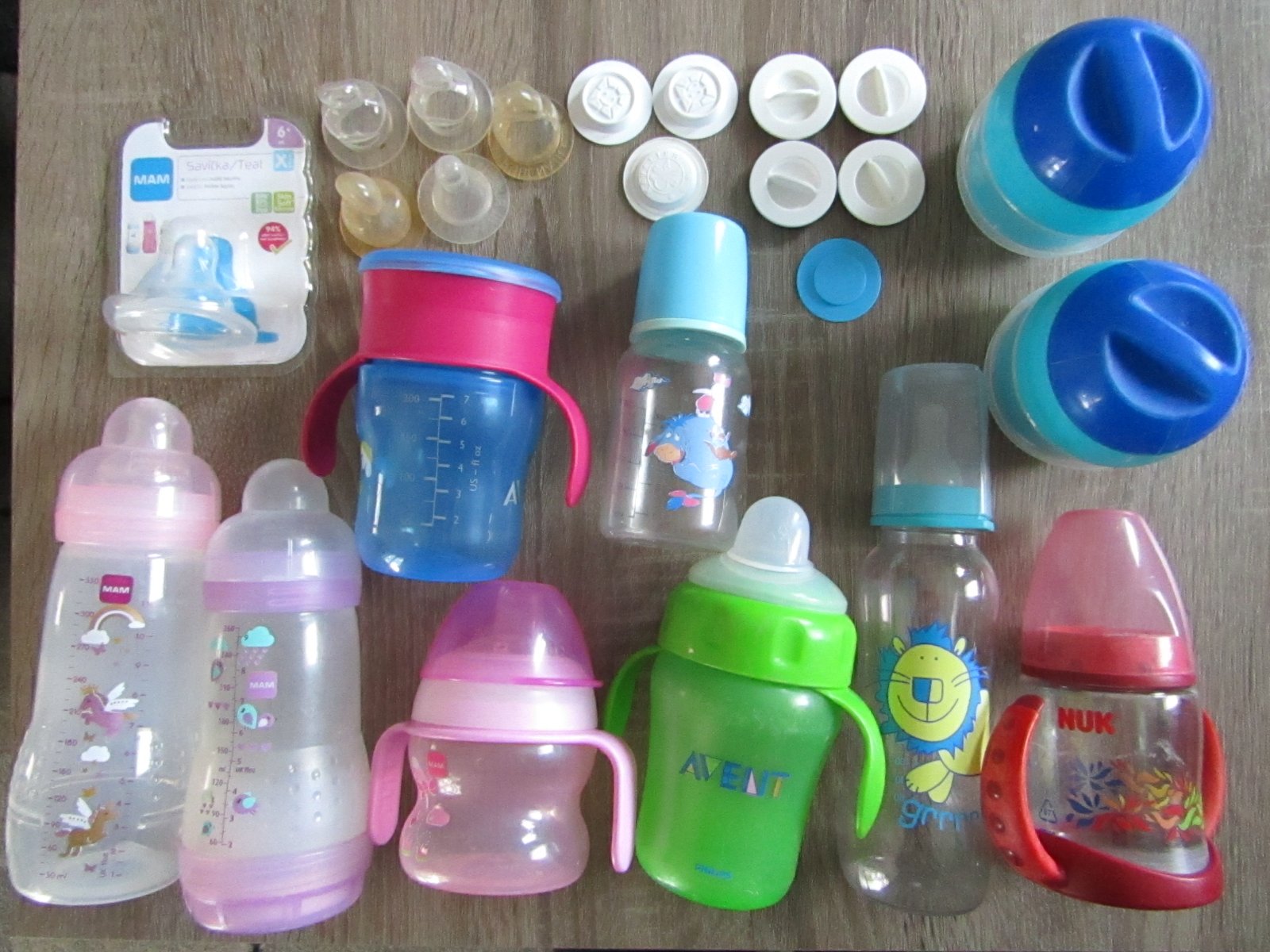 používané lahve,hrníčky,víčka + savičky viz.foto