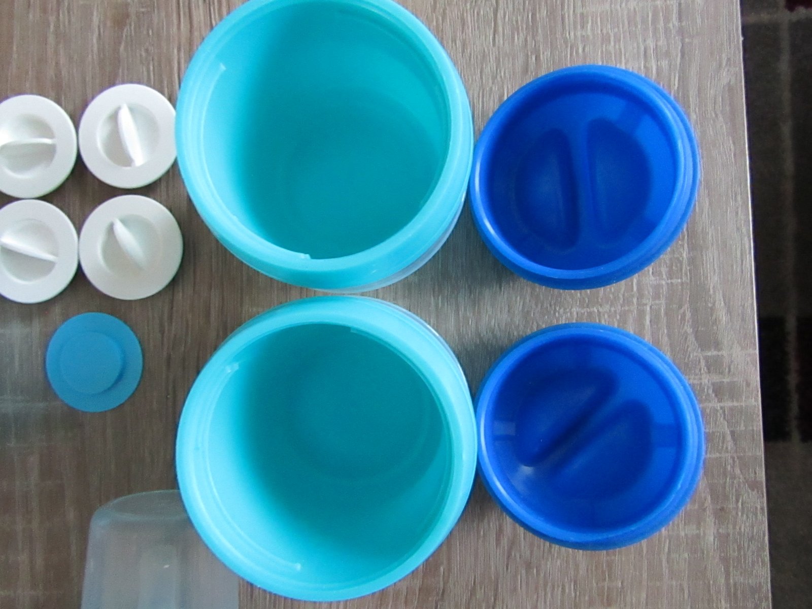 modré lahvičky s víčkem na sušinu -cena za 1 ks je 30 kč