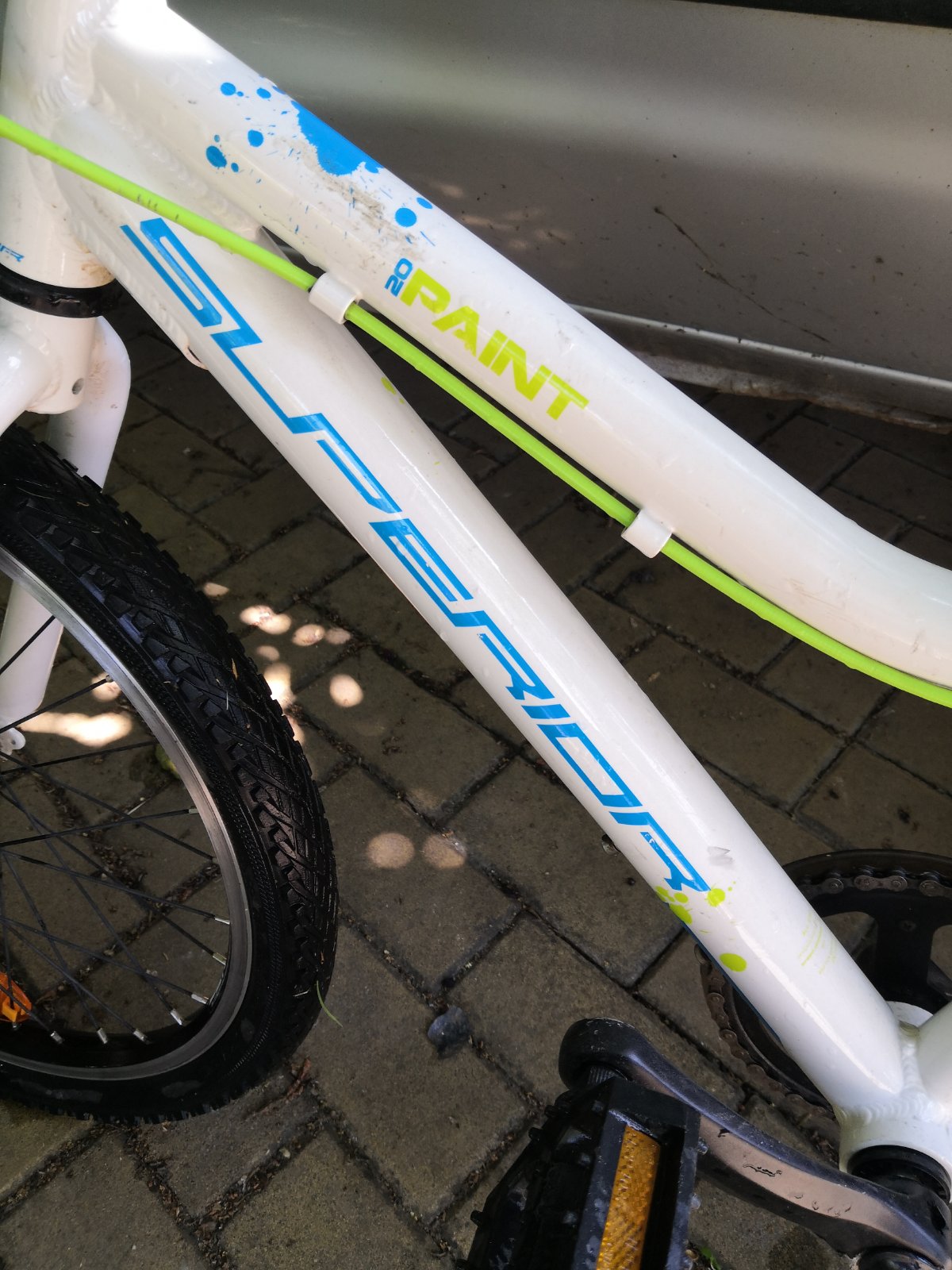 Dětské kolo Superior Paint vel. 20. Funkční. Kosmetické vady. Přehazovačka Shimano 6 rychlostí. Brzdy Tektro.