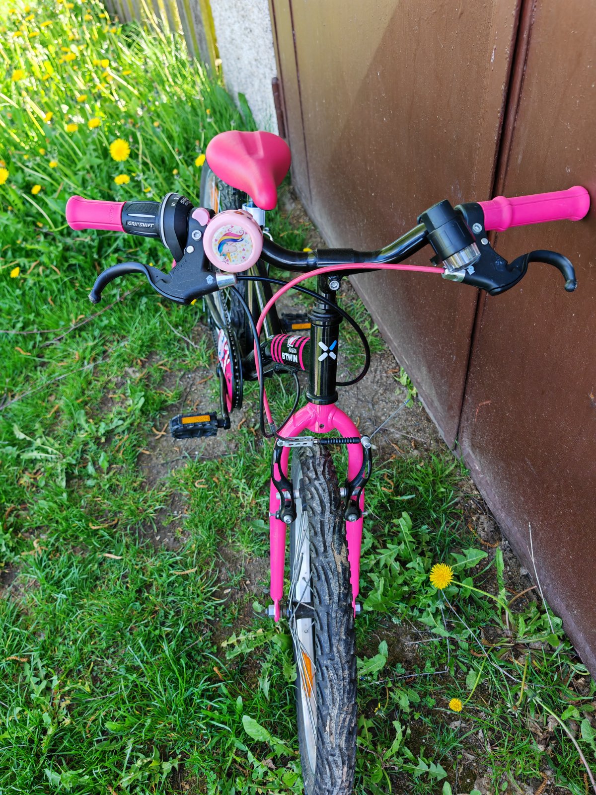 Dívčí kolo kupované v Decathlonu, v pěkném stavu, jen mírné škrábance z běžného opotřebení, přehazovačka, zvonek, odrazky.